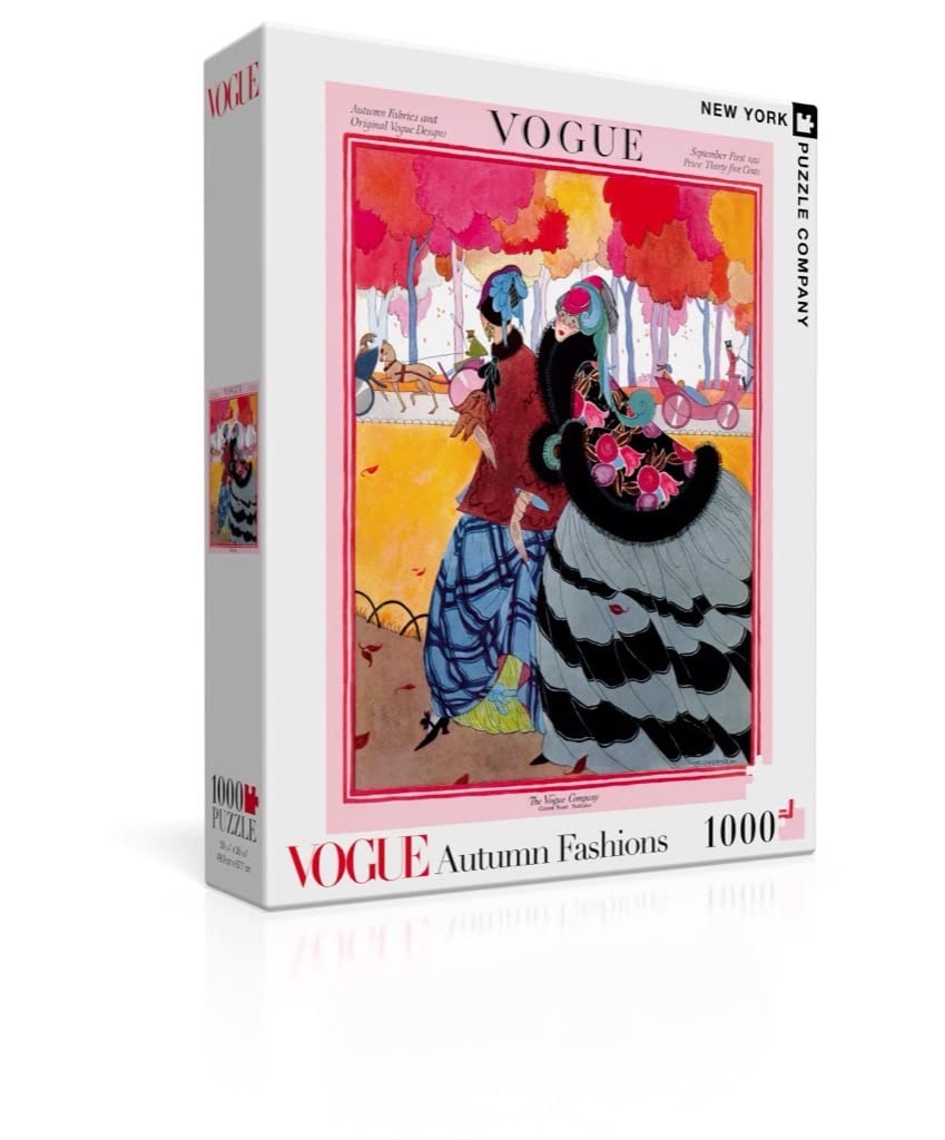 The Autumn Fabrics and Original Vogue Designs issue was largely dedicated to “the warp and woof of the mode”-in this case, the textiles from which then-current styles like the bouffant silhouette were made. To illustrate the bounty and variety of materials available that fall, Helen Dryden evoked an earlier time, drawing two women walking in a park in sweeping skirts and jackets. Behind them, under brilliantly hued autumn branches, a parade of horse-drawn carriages driven by livered coachmen. This artwork is a wonderful example of Dryden’s “innovation for magazine covers,” which Helen Appleton Read, an art critic and Vogue contributor, described in a 1924 piece for the Brooklyn Daily Eagle as being “a stylistic sophisticated combination painted in gay flat colors of French prints, the spirit of the rococo of 1830, of hoop skirts, and strapped slippers, pantalets, ringlets, patches and powder, parrots and French poodles, and a dash of the Picasso technique for modern piquancy.” Vogue Cover by Artist Helen Dryden, originally published on September 1921 1000 Piece Jigsaw Puzzle Finished Puzzle Size: 19.25"x26.625" Linen Style Finish to reduce glare Made in USA Recommended Age: 13+ Years