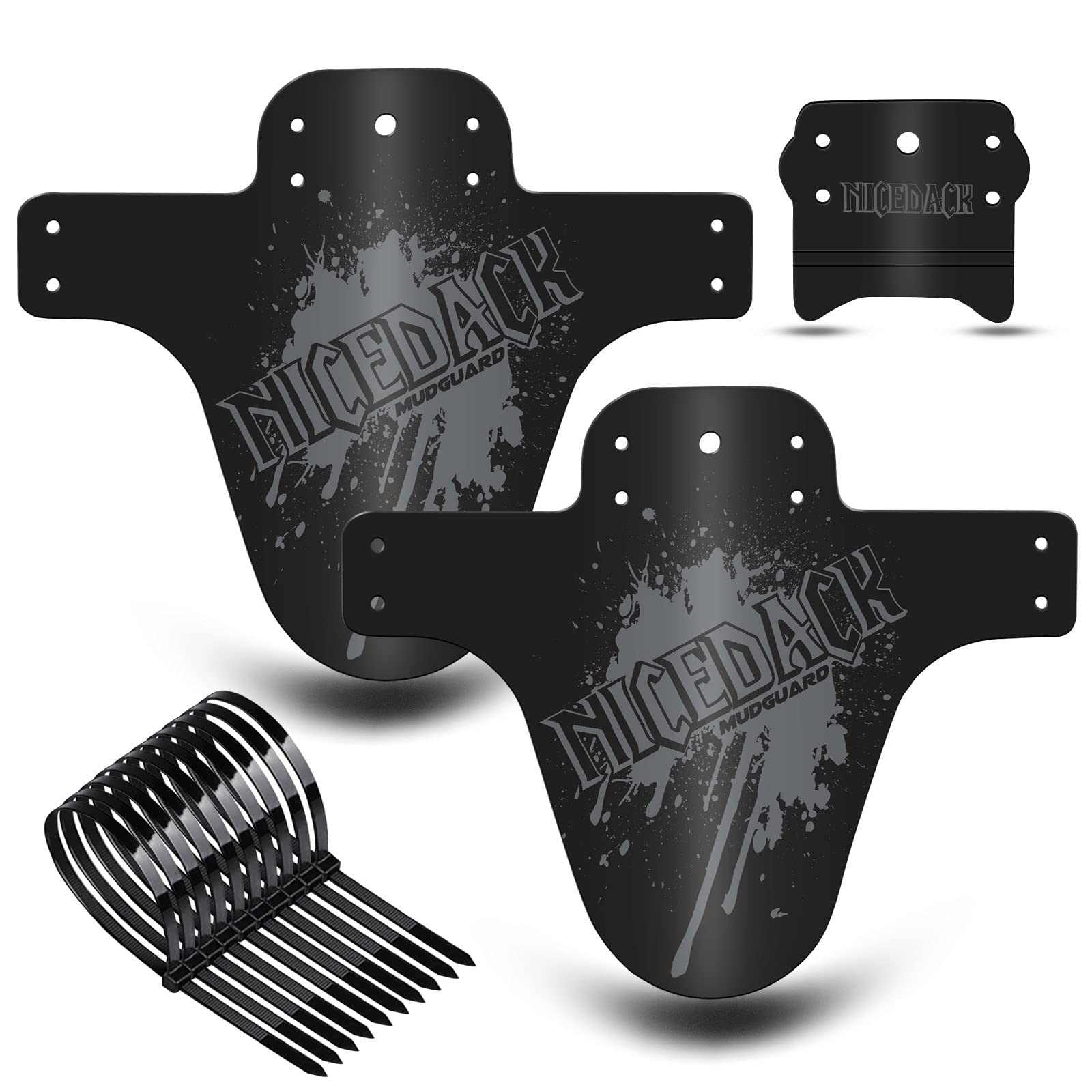 Nicedack Mud Guard, 2 Pieces Bicycle Mudguards for 26 Inch 650B 27.5 Inch 29 Inch MTB Mountain Bike Rear and Front Splash Guard Mudguard. Nicedack mudguard can effectively keep dirt splashing forward and anyone away from the face. The Nicedack Mudguard is a flexible mudguard that catches exactly the mud and dirt that is thrown through the fork bridges and the casting bridge into the air, and then lands back on the driver's face when riding fast. Unlike conventional mudguards, it is very light at 34 g and thanks to the reinforced construction, extremely durable. It can be used on 99% forks as well as on a variety of rear constructions, makes the Nicedack Mudguard almost complete in the field of "mud protection products". Another advantage of this little helper is to protect the dust seals and standpipes from flying mud, dirt, stones, etc. This results in less abrasion and less wear. Specifications Nicedack Mudguard. Material: 1 mm thick polypropylene board. Mudguard size: 26.5 x 22 cm / 10.43 x 8.66 inches (L x W). Stash size: 9 x 7.8 cm / 3.54 x 3.07 inches (L x W). Gross weight: 77 g / 2.72 oz. In addition to downhill sports, it is also seen on more and more Enduro All-Mountain and Cross Country Bikes. Above all, the functionality and beautiful look convince from the first ride. Box contents: 2 Nicedack mudguards, 10 mounting material (cable ties)
