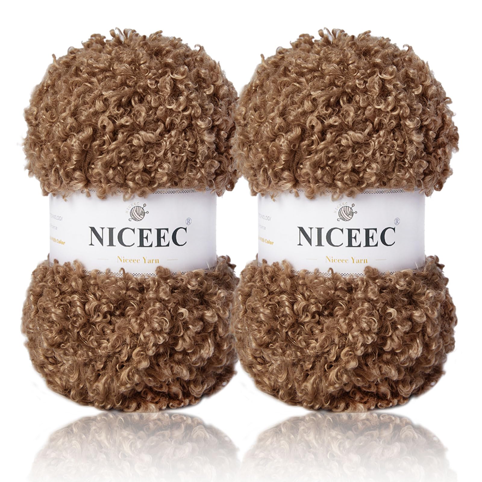 NICEEC 2 Skeins Teddy Fur Yarn Super Soft Yarn Chunky Fluffy Faux Fur Yarn Fuzzy Yarn Eyelash Yarn for Crochet Knit -Total Length 2×50m(2×55yds,3.53oz×2)-Brown