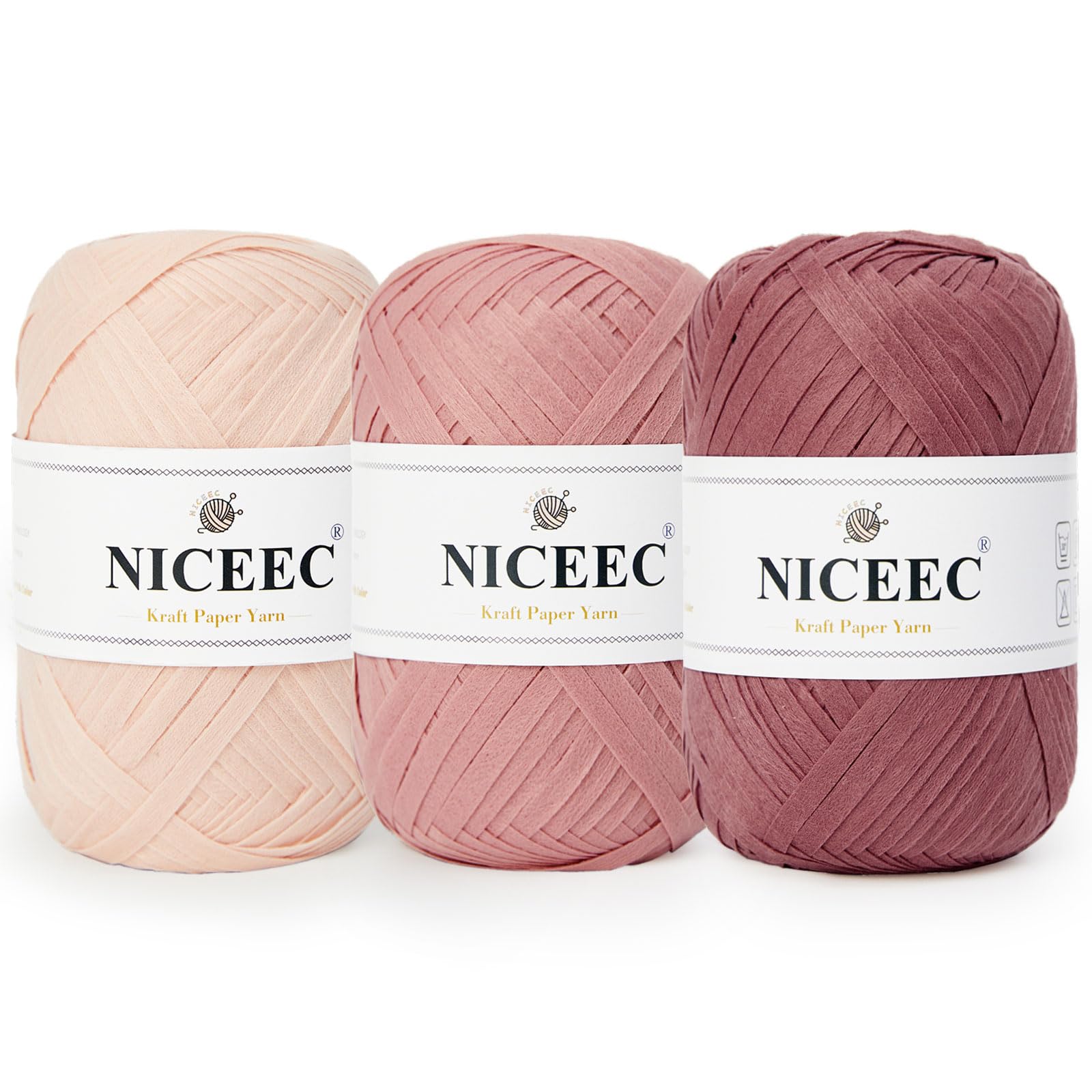 NICEEC Kraft Paper Yarn Raffia Yarn Soft Craft Ribbon Yarn Polyester Yarn for Crocheting DIY Craft Yarn-Pink Series