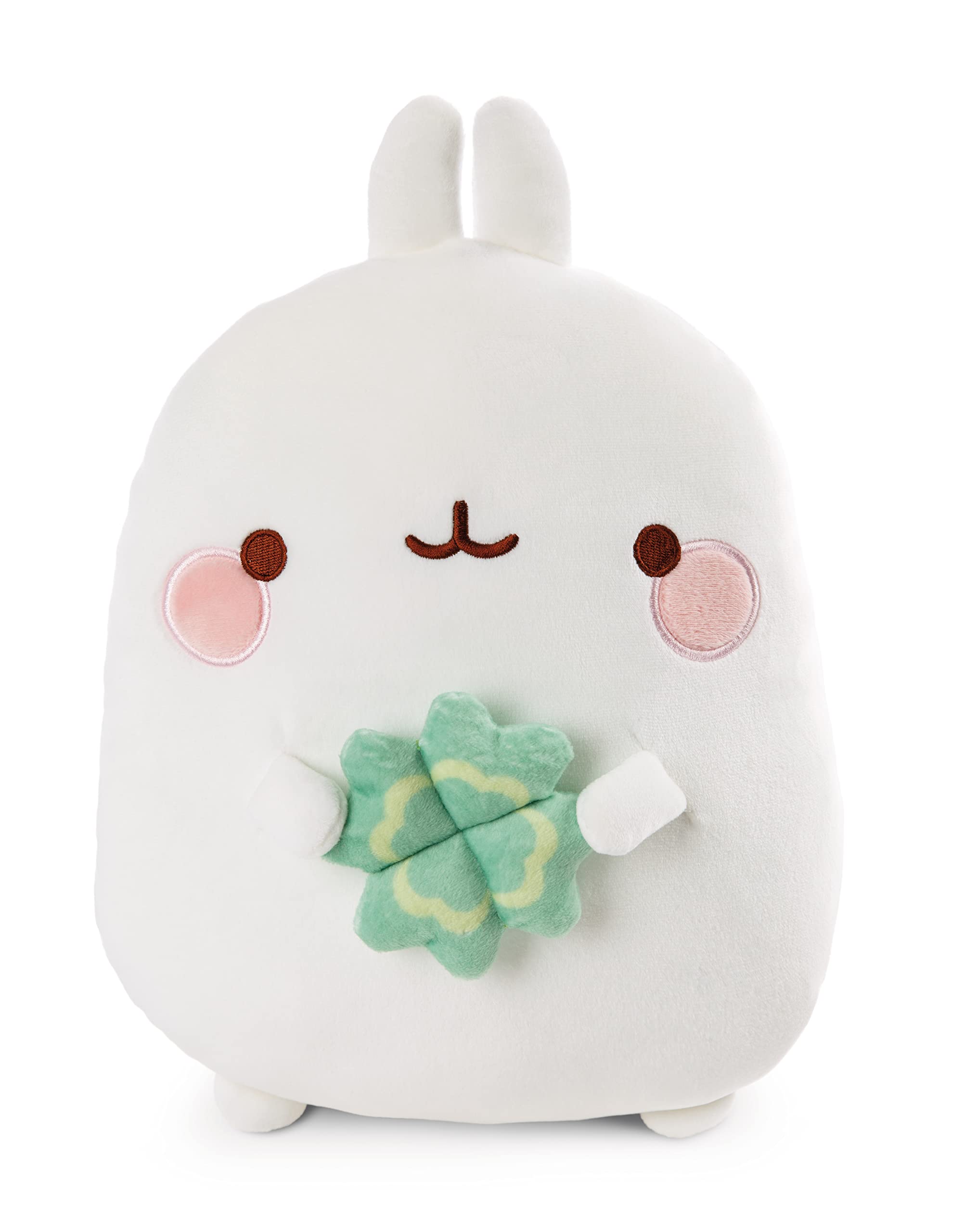 Product DescriptionThe cuddly soft plush pillow in the shape of Molang, the lovable character of the TV serial and known from social media, is made of a super fluffy soft plush with a particularly cuddly filling; Molang carries a lucky charm, a green four-leaf clover, in the hands; with the decorative plush pillow as a gift it is guaranteed that cuddly friends and MOLANG fans alike are happy and grateful; kind and affectionate Molang has a unique instantly recognizable style; everyone loves Molang and Molang loves everybodySafety WarningNo warning information