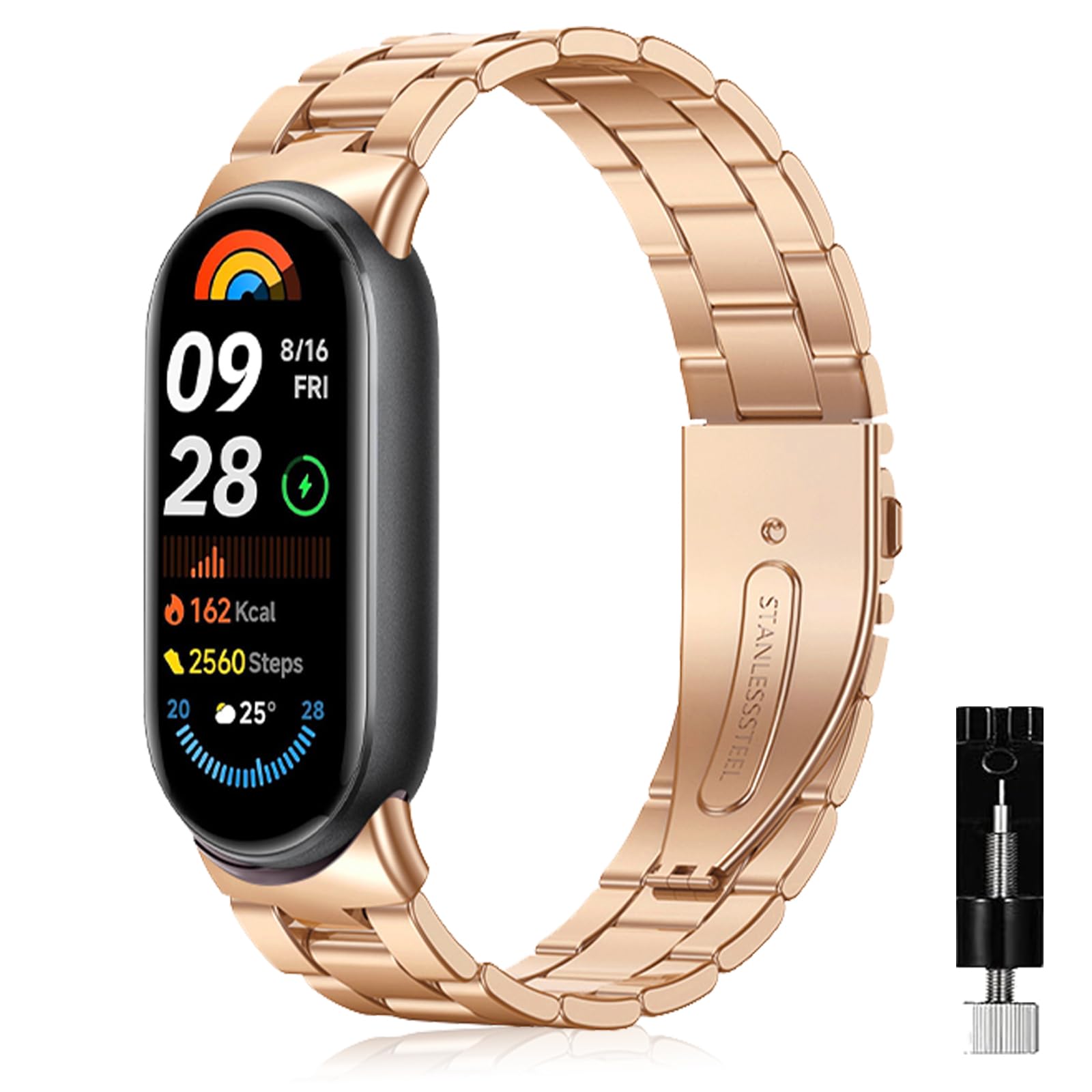 NicMool Metal Straps Compatible with Xiaomi Mi Smart Band 9 Xiaomi Mi Smart Band 8, Stainless Steel Business Replacement Band for Xiaomi Mi Band 9/Xiaomi Mi Band 8 - Rose Gold