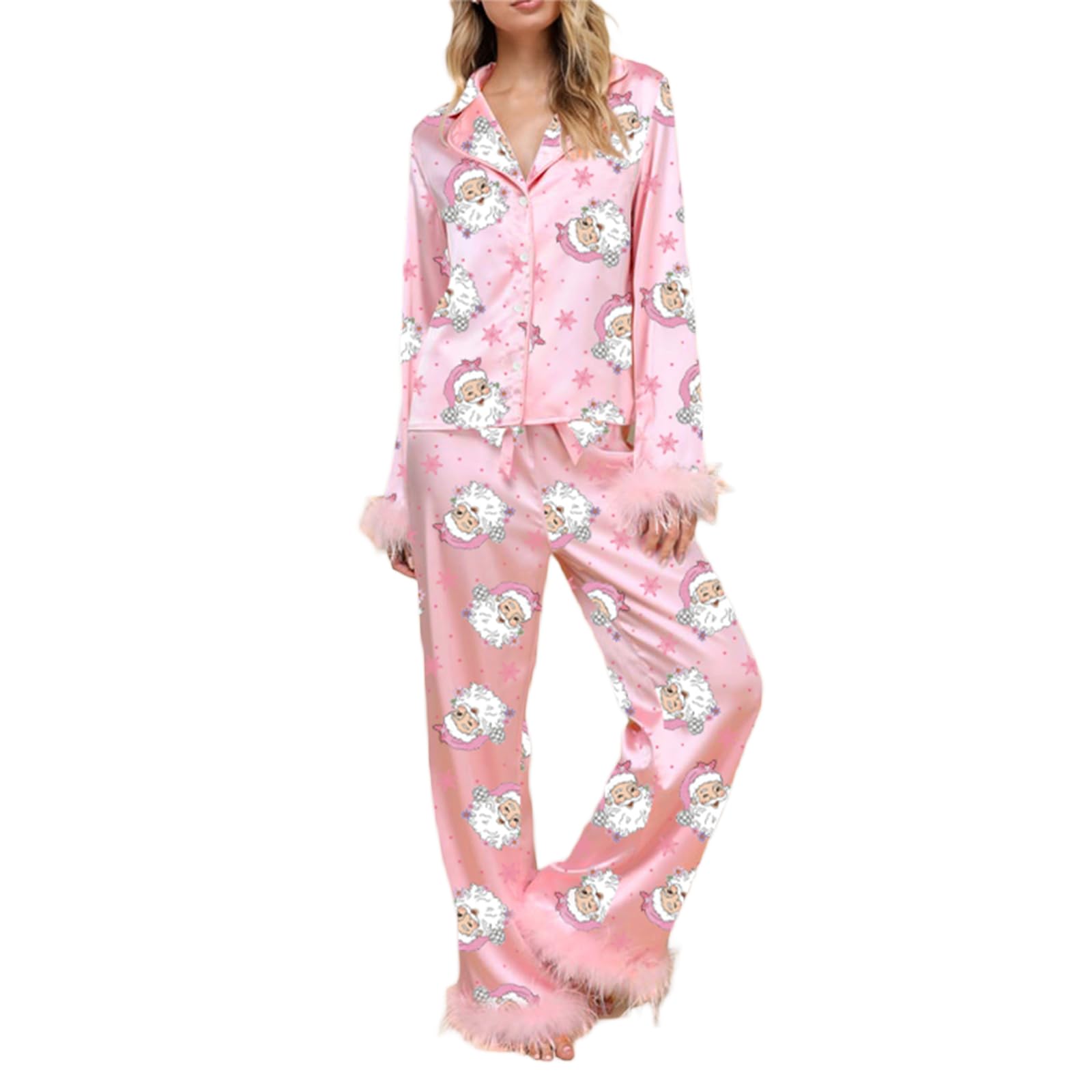 Women's 2 Piece Pajama Set Long Sleeve Lapel Button Up Shirt Tops Solid Color/Plaid Pants Sleepwear Sets