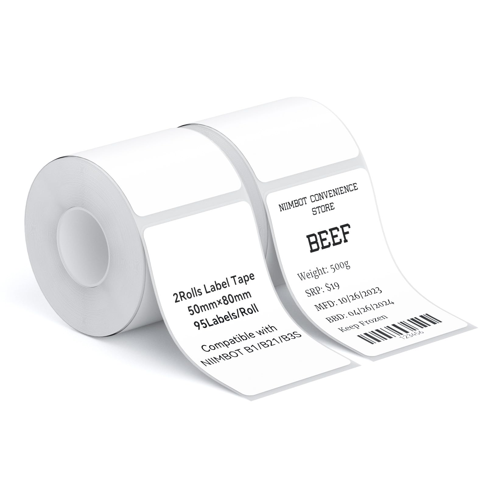 Package List: Two rolls of label paper compatible with NIIMBOT B1/B21/B3S Label Maker Label Size:50 x 80 mm (1.97'' x 3.15'') -95 Tapes/Roll Product Features: waterproof, oil-proof, tearproof, leave no trace, and BPA-free, stronger adhesiveness, removed easily, no residue left.