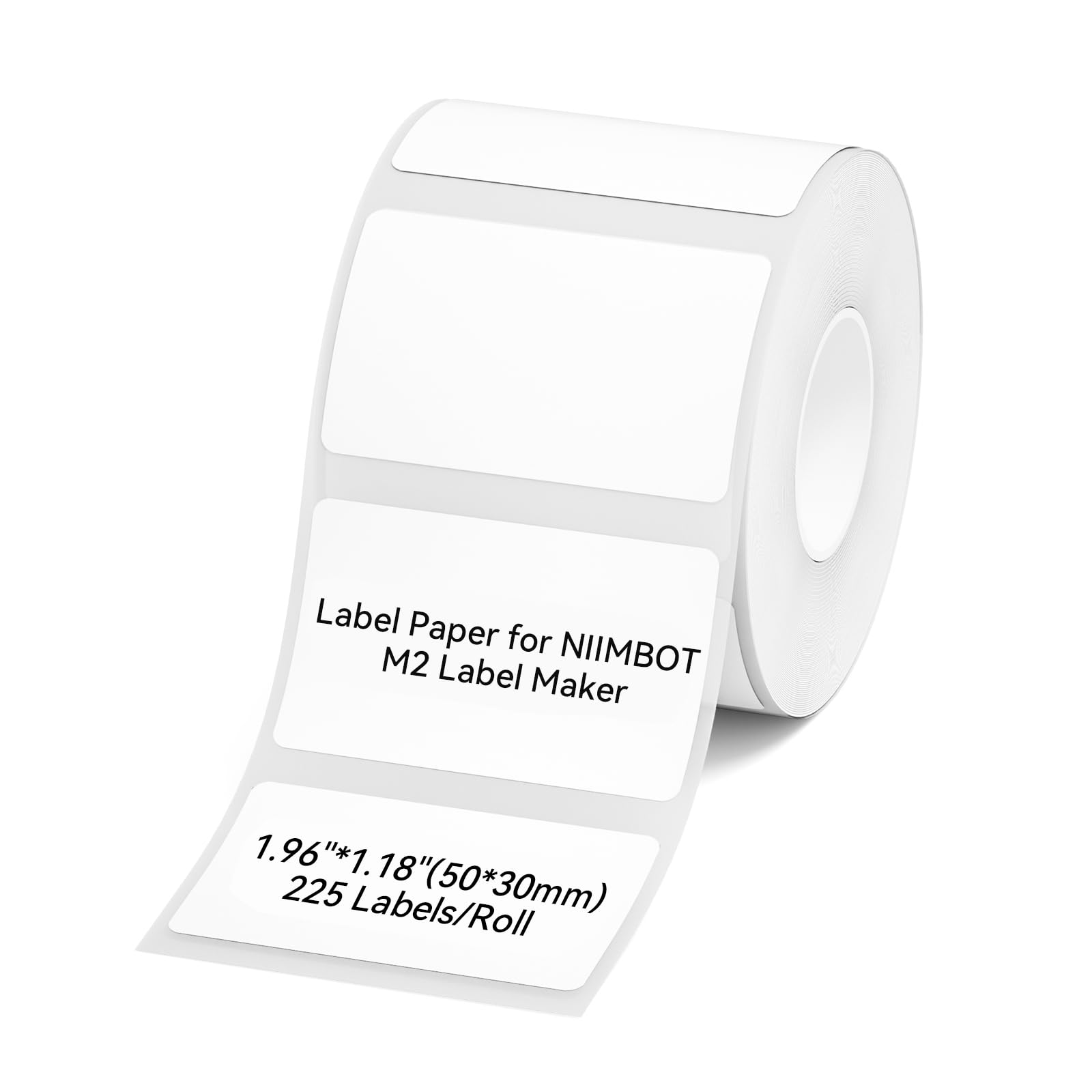 NIIMBOT M2 Thermal Transfer Labels 1.96" x 1.18" (50x30mm), Only for M2 Label Maker, PET Material, Waterproof and High-Temperature Resistance, Long Storage Time, White Label Tape