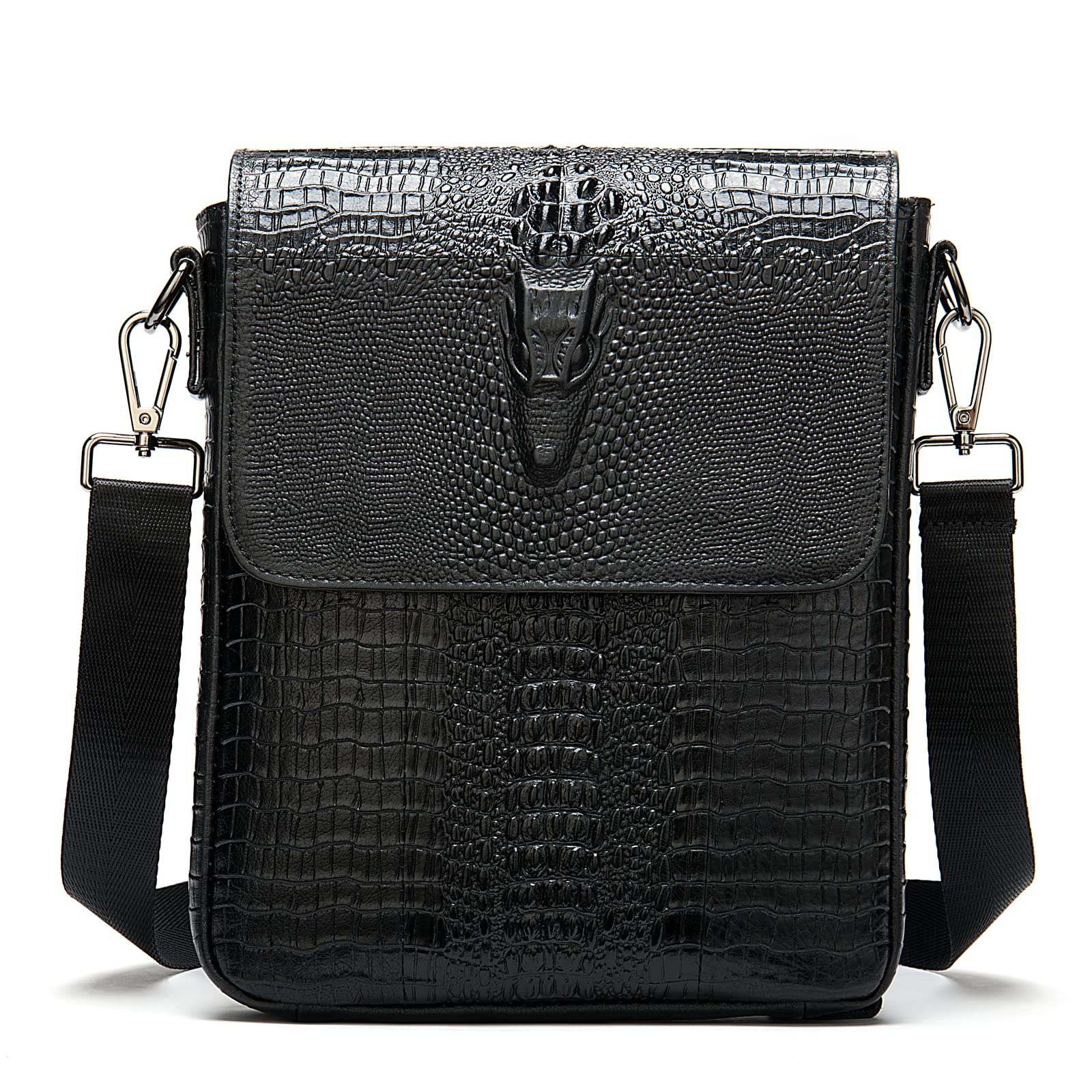 NIUCUNZH Leather Flap Messenger Bag for Men Small Crossbody Shoulder Bag,Novelty Crocodile Embossed Black