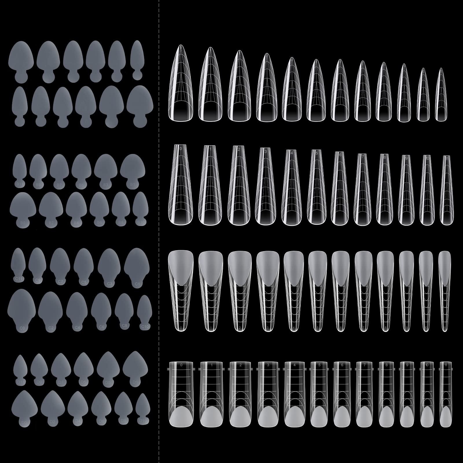 Package incldued: 4 type dual nail mould*48pcs/type (12 sizes, 4pcs/size); 4 type silicone sticker*24pcs/type (12 sizes, 2pcs/size)