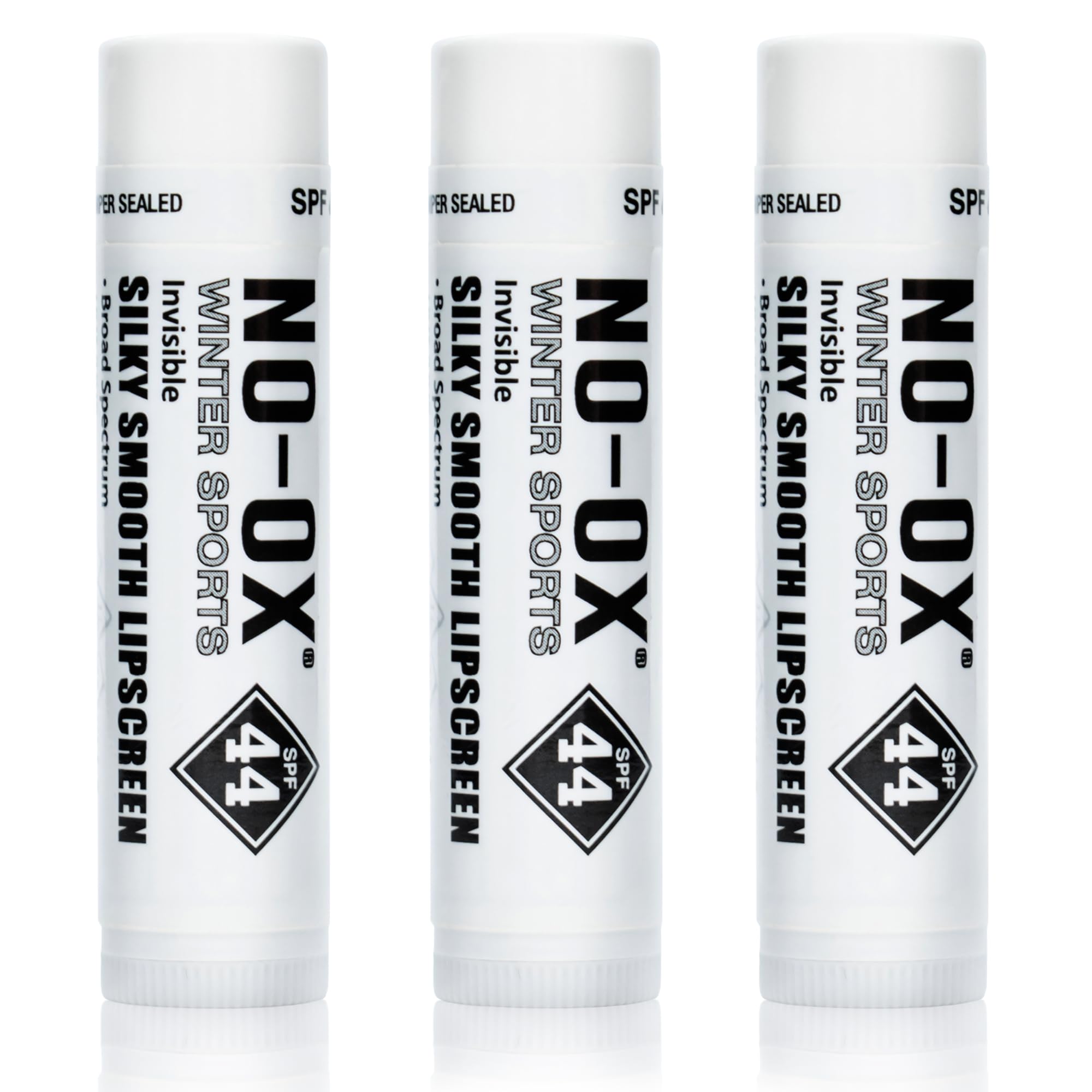 NO-OX SPF 44 Sunscreen Lip Balm - Winter & Snow Sports Label - All Season - Broad Spectrum - Water Resistant - Vanilla Flavor - 3 Pack