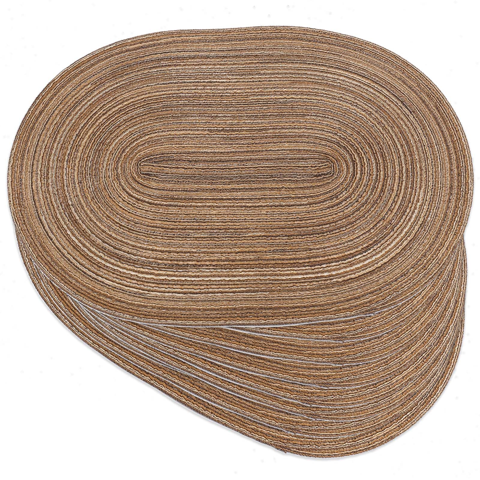 Noctiflorous Oval Braided Placemats 12x18 Inch Table Mats Set of 8 for Dining Tables Natural Woven Heat Resistant Place Mats (Oval Brown8)