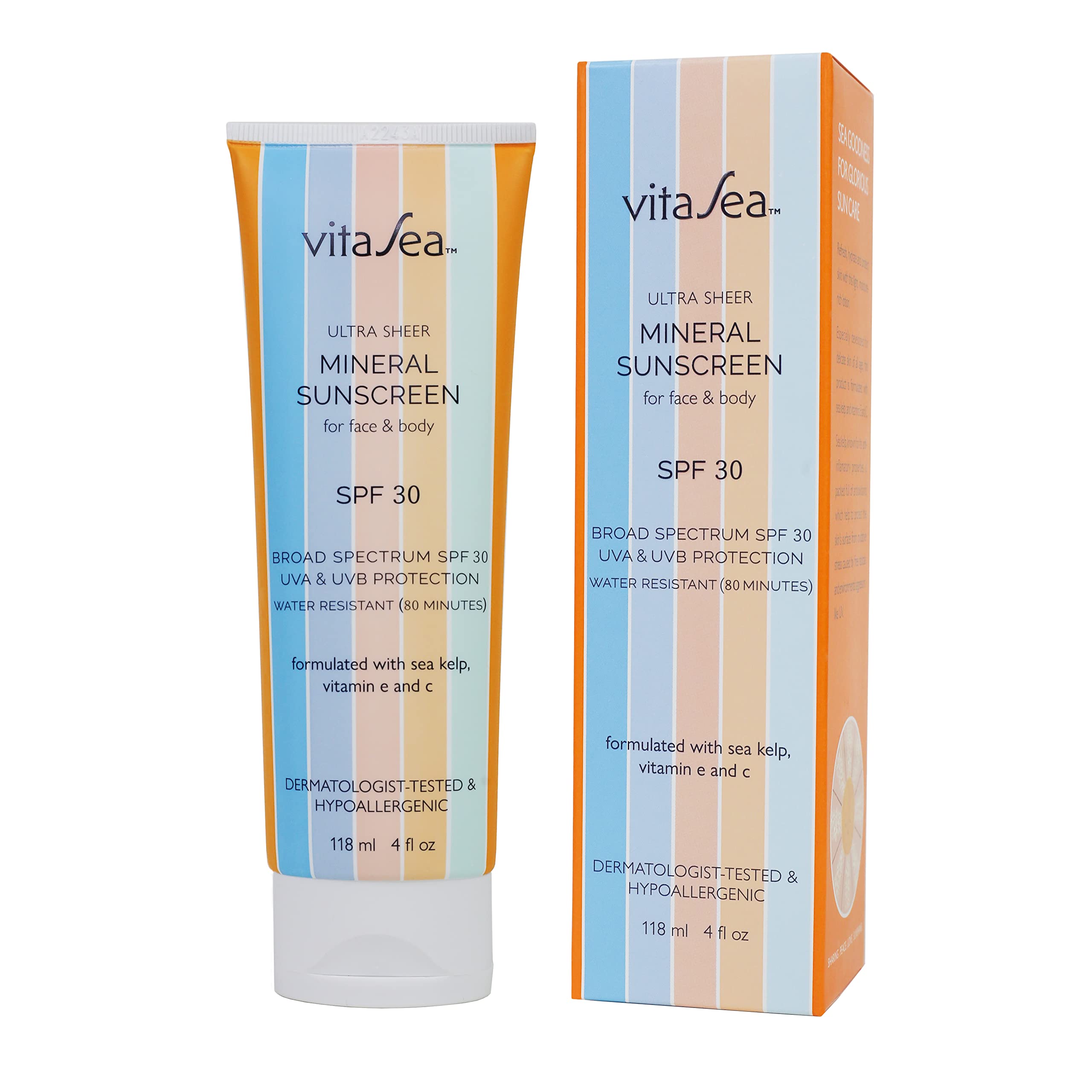 Refresh, hydrate, and protect your skin with this light, moisture-rich Face and Body Sunscreen Lotion from Noodle & Boo VitaSea Collection. Specially developed for the delicate skin of all ages, this product is formulated with sea kelp, and vitamins E and C. Sea kelp, that is packed full of antioxidants that help to protect the skin's surface from oxidative stress caused by free radicals and environmental aggressors like UV.SEA GOODNESS FOR GLORIOUS SUN CAREMineral Sunscreen Face & Body LotionUltra Sheer Non-Nano Zinc OxideVeganFormulated with Sea Kelp, Vitamin E & CBroad Spectrum SPF 30UVA & UVB ProtectionWater Resistant (80 Minutes)All Skin TypesRecommended for children 6 months and olderHypoallergenicDermatologist-testedHawaii Reef ACT 104 Compliant (Reef Safe Sunscreen SPF 30)Cruelty-freeMade in USA4 fl ozShake well. Apply liberally and evenly 15 minutes before sun exposure • Reapply: after 80 minutes of swimming or sweating • Immediately after towel drying • At least every 2 hours • Sun Protection Measures. Spending time in the sun increases your risk of skin cancer and early skin aging. To decrease this risk, regularly use a sunscreen with a Broad Spectrum SPF value of 15 or higher and other sun protection measures including: • Limit time in the sun, especially from 10 a.m. - 2 p.m. • Wear long-sleeved shirts, pants, hats, and sunglasses. • Children under 6 months of age: ask a doctor.