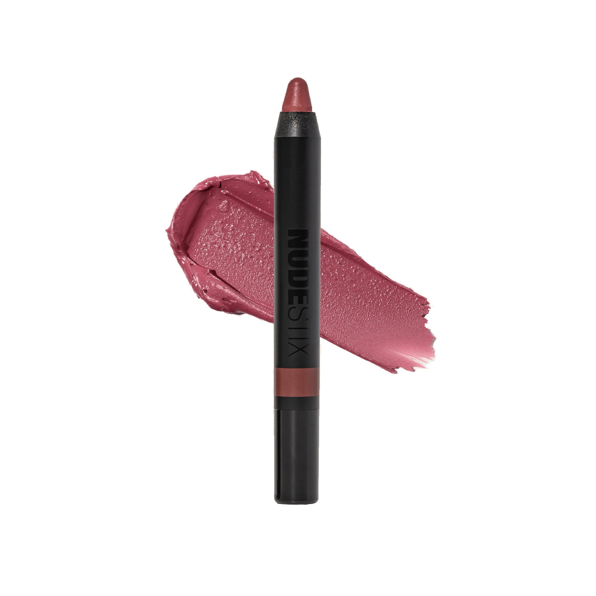 Three-in-one matte lipstick pencil, lip liner and cheek tint.