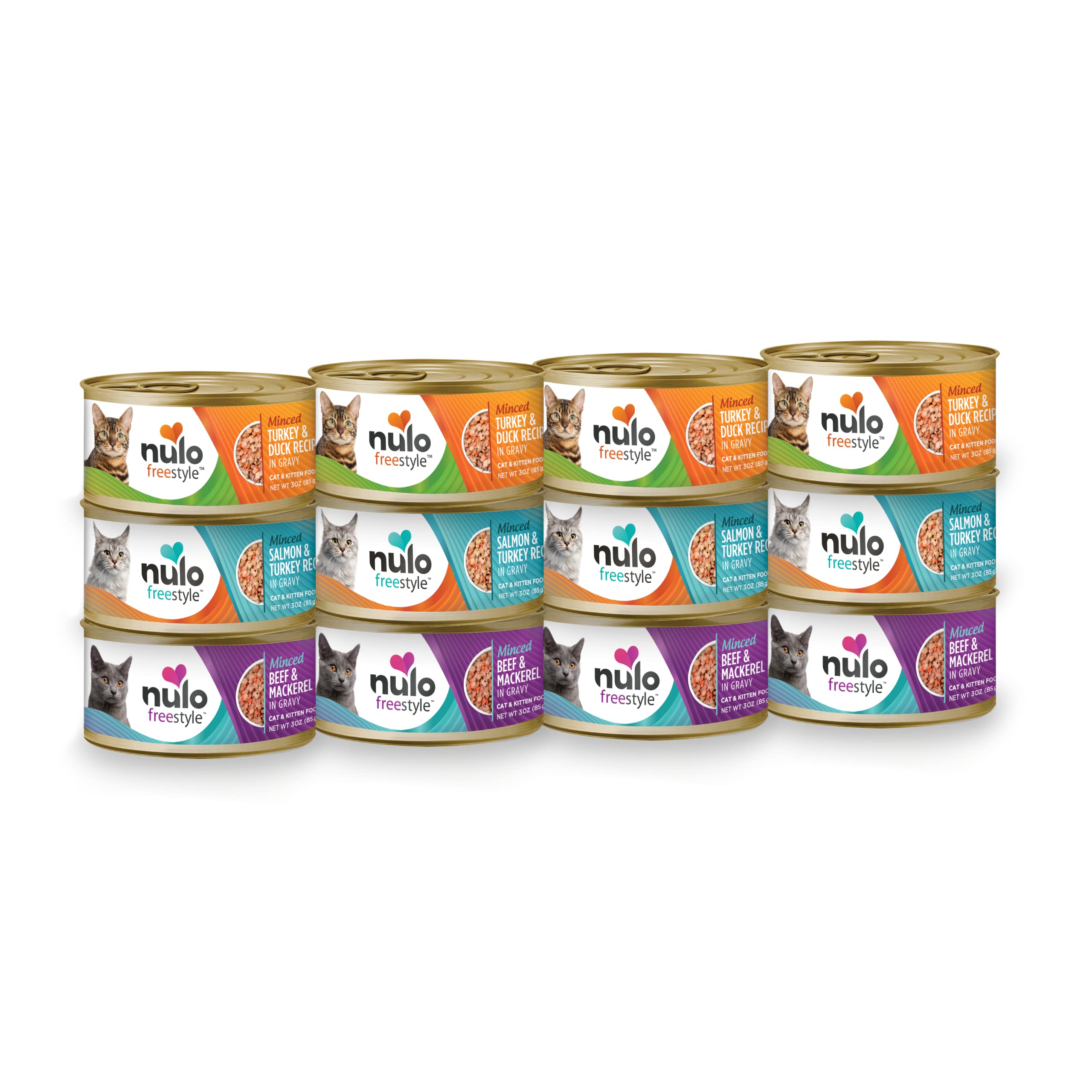 For the Jungle cat within cats are inherently carnivorous, and foods rich in proteins more closely resemble their natural diet than grain-based carbohydrates. Nulo Grain Free Canned wet food contains more of the ingredients that your cat would be eating in the wild. Nutritionally balanced and delicious, our special blend of 5 animal protein sources keeps your cat full longer and supports weight management. Your house Panther will stay quick and limber so he can pursue that elusive Red dot with gusto. a difference you can see Nulo Grain Free wet cat food is made in the USA with 100% all-natural ingredients. What you won’t find in our proprietary recipe are corn; wheat; soy; carrageenan; White potatoes; tapioca; artificial colors, flavorings or preservatives. Because grains are known to aggravate feline Food sensitivities, it is quite possible that your cat will be relieved of irritations and digestive issues that you hadn’t realized were related to his grain-heavy diet. Nulo’s protein-rich formula will keep your cat looking and feeling great. for every stage of your cat’s life the amount of food that your cat needs will depend upon activity level, age, environment and breed. Nulo Grain Free wet cat food should be allocated at 1 Can per 6-8 lbs of body weight per day. Feed up to twice the adult amount to kittens. During gestation and lactation, feed up to 3 times the normal adult amount. Unused portions can be covered and refrigerated for later use. Always provide access to fresh water. ensure your cat’s health now and long into the future. Add Nulo Grain Free Canned cat food to your cart today.