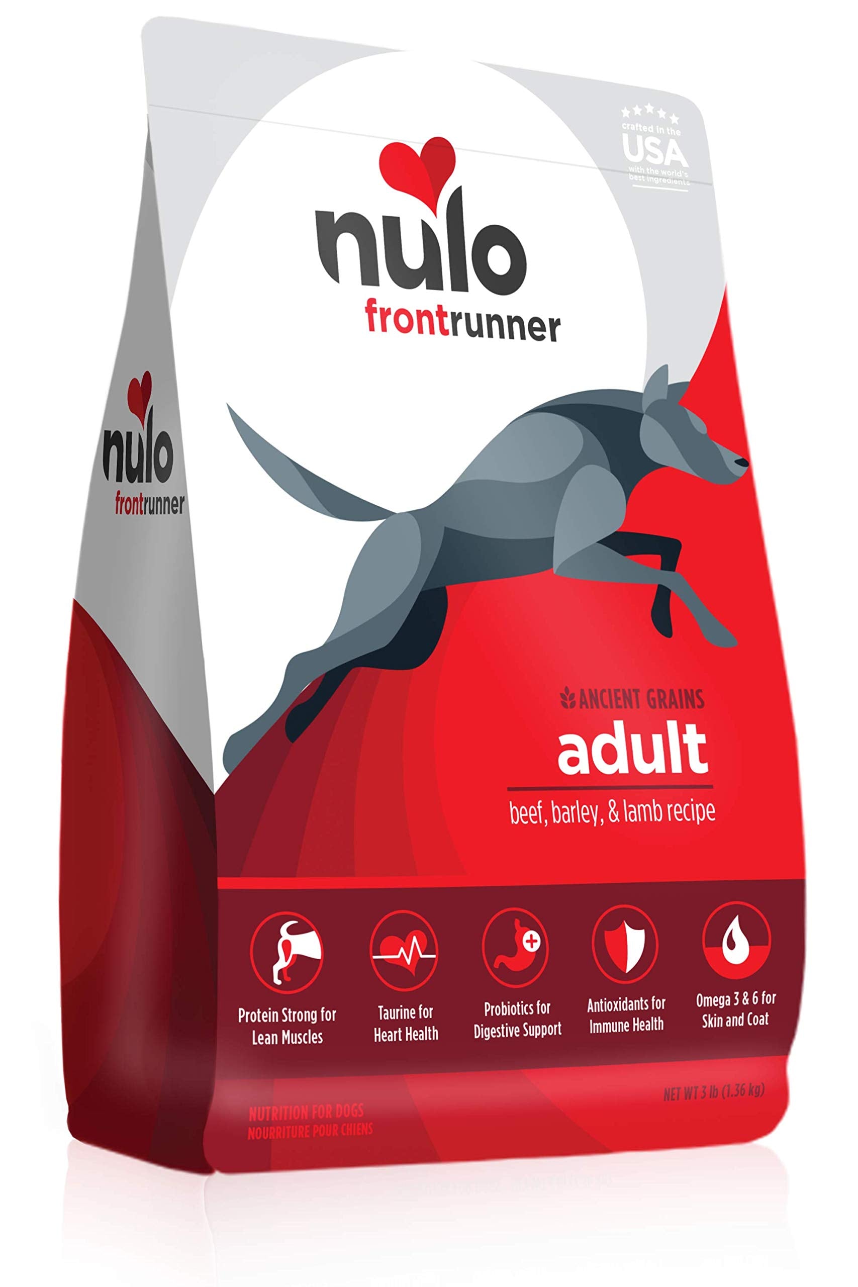 Nulo Frontrunner is a low grain line of dog food formulated with 77% animal based protein, low carbohydrate and low glycemic grains, and a patented BC30 probiotic Made with low-glycemic grains lower in carbs high-quality proteins for lean muscles and heart health GanedenBC30 probiotic supports digestive and immune health Omegas for brilliant skin and coat