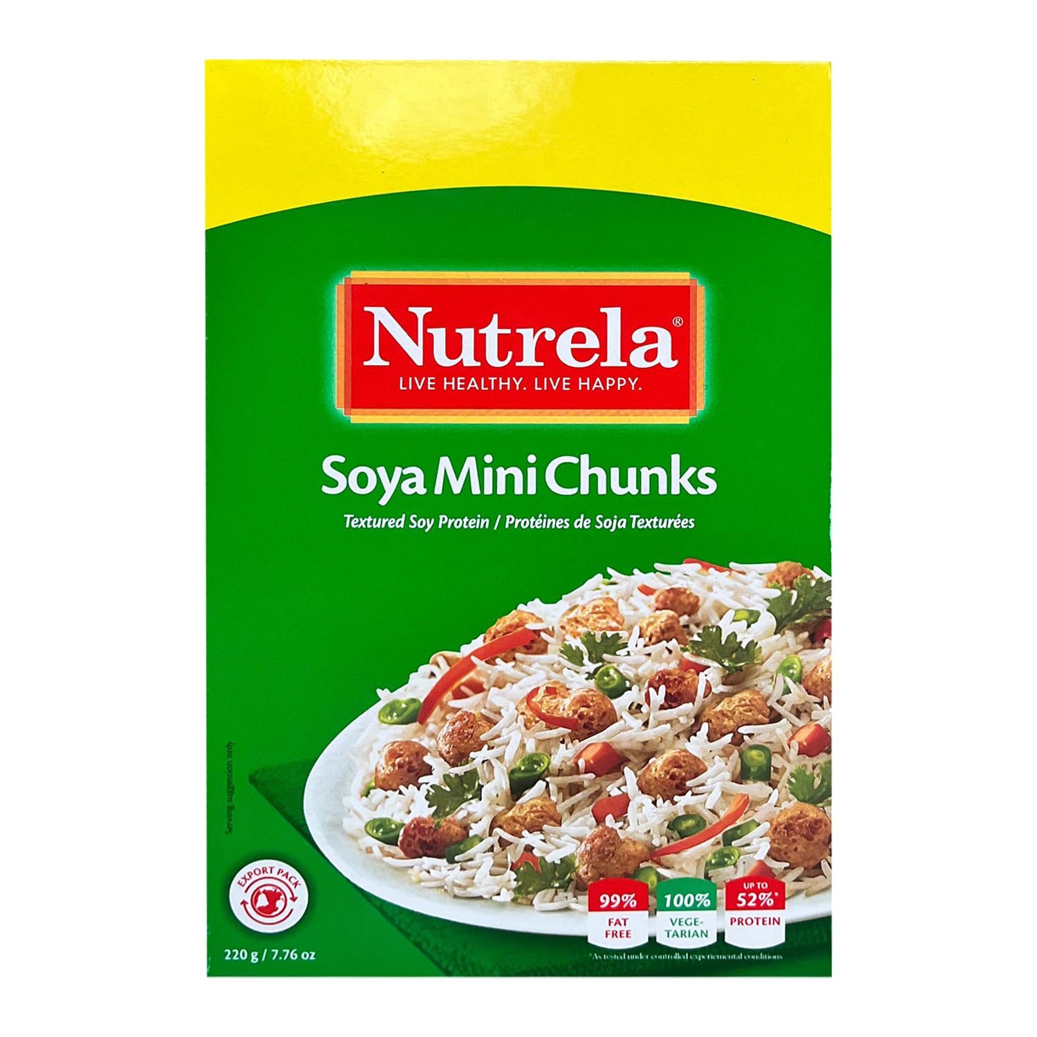 Mini Soya Chunks, purely made from 100% soy flour. Nutrela Soya Chunks are the alternative products of choice when trying to avoid meat and eggs and finding sources for Protein or which comes under pure vegetarian stuffs. It unifies easily in all types of