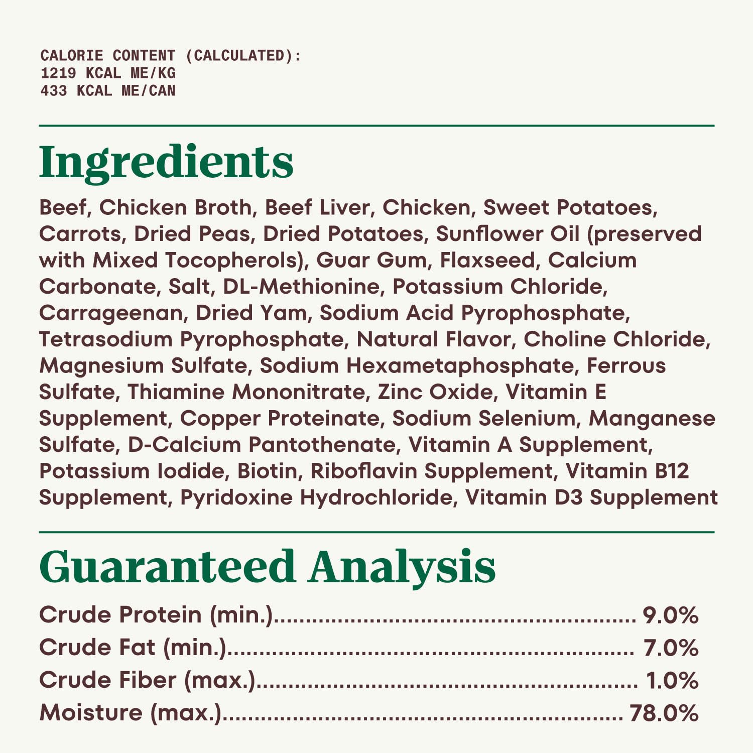 NUTRO knows that dogs are valued members of the family, and they deserve healthy, wholesome meals that nourish their lives. NUTRO PREMIUM LOAF Adult Natural Grain Free* Wet Dog Food* Tender Beef, Sweet Potato & Carrot Recipe is a delicious soft and moist dog food that’s rich in nutrients and full of flavor (*Natural Dog Food plus Vitamins & Minerals & other Nutrients). Featuring real beef as its first ingredient, you can trust that NUTRO wet food contains no chicken by-product meal, no corn, wheat, or soy, and no artificial flavors, colors, or preservatives (trace amounts may be present due to potential cross-contact during manufacturing). NUTRO recipes are crafted with quality ingredients from around the world that have been carefully sourced from a trusted network of farmers and suppliers. NUTRO is committed to safeguarding the source of natural ingredients by working with farmers to protect and improve soil health so we can continue to grow healthy pets for years to come. To help nourish your dog and help them live an active life, you can feed them NUTRO PREMIUM LOAF wet dog food.