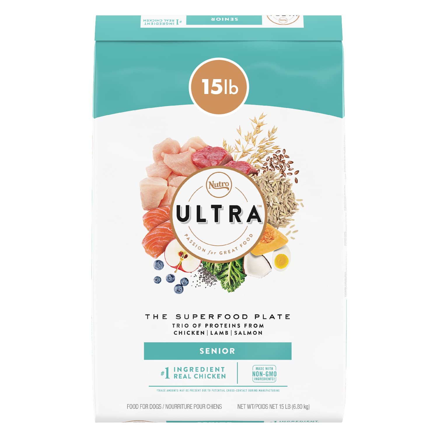 Product DescriptionNUTRO ULTRA believes that dogs deserve to enjoy their food as much as we enjoy ours. And like us, they shouldn’t have to compromise on taste. NUTRO ULTRA Senior Dry Dog Food with a Trio of Proteins From Chicken, Lamb and Salmon is crafted using quality ingredients that satisfy and nourish. These delicious healthy dog food recipes start with real chicken as the #1 ingredient and feature a trio of high-quality protein from chicken, lamb, and salmon and a blend of 15 vibrant superfoods like coconut, chia, kale, and blueberries that support coat health and healthy skin. NUTRO ULTRA Senior Recipe provides a balanced diet for senior dogs that’s nutrient rich and full of flavor that’ll help your aging canine thrive. Bring together unique ingredients and flavors to make your pet’s mealtime an extraordinary moment with NUTRO ULTRA Dog Food. All NUTRO ULTRA Dry Dog Foods follow the NUTRO FEED CLEAN philosophy, using high-quality ingredients sourced from trusted farmers and suppliers. These dry recipes are made with Non-GMO ingredients† and have no chicken by-product meal, corn, wheat, or soy protein and no artificial flavors, colors, or preservatives. Plus, these nutrient rich recipes are full of flavor and have high-quality protein as the foundation of every recipe. † Trace amounts of genetically modified material may be present due to potential cross-contact during manufacturing.Amazon.comULTRA Senior Dog Food provides aging dogs with high quality ingredients rich in vitamins, minerals and nutrients, such as glucosamine and beta carotene, to help maintain a healthy and active lifestyle. Our premium senior dog food provides complete nutrition in every bite.