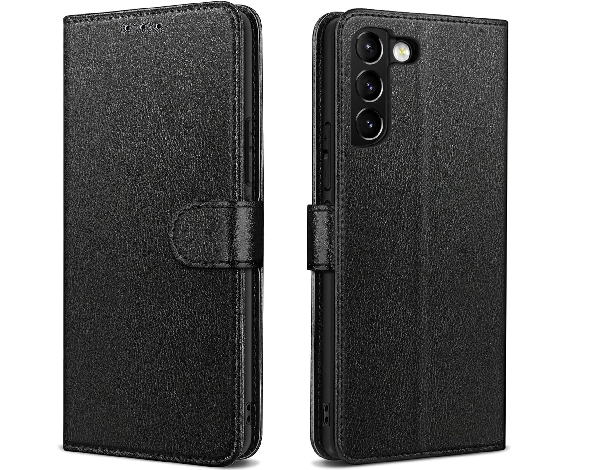 Samsung Galaxy S21 5G / Samsung Galaxy S21 Wallet Design Ultra Slim Leather Wallet Card Flip Stand Case Features: High Quality Material :- Samsung S21 5G Sleek Look premium quality leather case is made of simulated leather and TPU inner shell, providing maximum protection against accidental fall, bumps and scratches. Provide efficient protection for your smart phone. Comprehensive Protection :- Galaxy S21 case the inner of the leather case is made of a smooth soft leather designed to protect your phone screen from scratches. With a secure rubberized TPU holder to keep your phone securely in place, it is the ultimate shock absorber providing scratch resistance and drop protection ensuring your smart phone stays safe & secure all the time. Secure Magnetic Closure Strap :- Samsung galaxy S21 Built-in magnetic closure strap ensures that your cell phone and your cards are safely stored, to keep your valuables safe & handy all the time. Precise Cutouts :- for camera, charging port , speaker, headphone jack. You can easily charge your phone without taking out of the case and listen to earphones with the case closed. Card Slots and Bill Compartment :- Samsung S21 5g multi functional case includes wallet-like features such as two slots to hold cards and and third larger pocket note slot for cash / receipts in the inside pocket. Enjoy the convenience of having smartphone, credit cards, license and cash all in one place. Easy Access :- Samsung S21 Quick and easy access to ports and buttons. Innovative new button design ensures an extremely easy to press button experience. Stand Function :- Wallet Case has built in stand feature, which folding into multi-viewing angles to watch videos and hands free. Package Includes :- 1 x Book Case