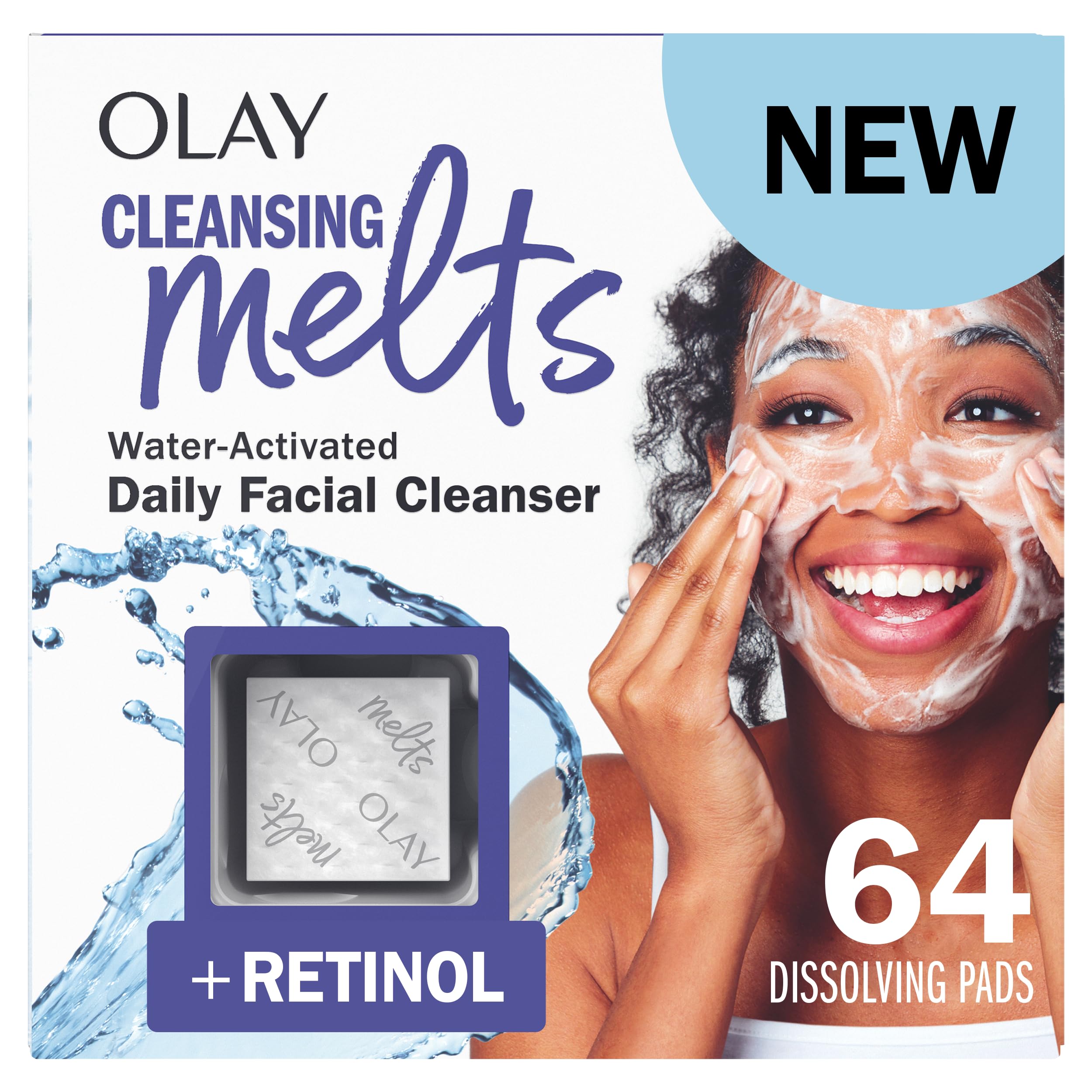 Olay Cleansing Melts + Retinol Face Cleanser, 64 ct. total (2 x 32 ct.), Water-Activated Face Wash to Clean, Tone, and Refresh