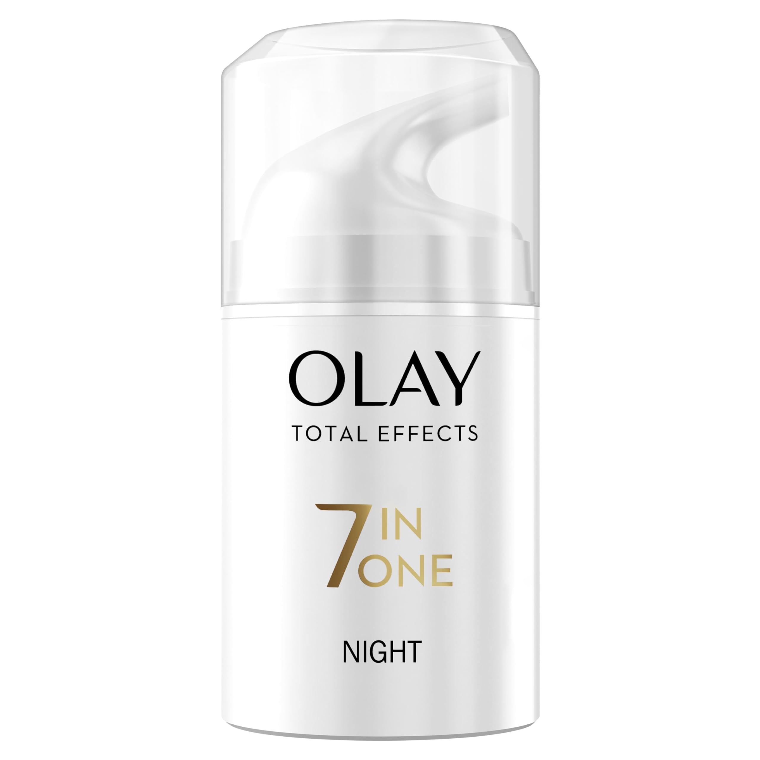 DescriptionProduct DescriptionOne step to visibly firmer skin every morning! This multitasking night moisturiser delivers on 7 skin benefits in one simple step, so you wake up every morning to visibly firmer, nourished & healthy-looking skin. Olay Total Effects formula, supercharged with antioxidant vitamins B3, C & E, as well as Pro-Vitamin B5, boosts hydratiaon & skin surface renewal overnight. It delivers 7 benefits in one step: it hydrates, boosts glow, evens skin tone appearance, minimises the look of pores, smooths & plumps, reduces the look of fine lines & wrinkkles. Clinically tested formulaIngredientsAqua, Glycerin, Niacinamide, Isohexadecane, Dimethicone, Isopropyl Isostearate, Stearyl Alcohol, Polyacrylamide, Panthenol, Tocopheryl Acetate, Camellia Sinensis Leaf Extract, Ethylhexylglycerin, Sodium Ascorbyl Phosphate, Caprylyl Glycol, Dimethiconol, Laureth-7, Cetearyl Alcohol, Cetearyl Glucoside, Stearic Acid, Palmitic Acid, Cetyl Alcohol, Behenyl Alcohol, Arachidyl Alcohol, Disodium EDTA, Zea Mays Starch, Citric Acid, PEG-100 Stearate, Ammonium Polyacrylate, Titanium Dioxide, C13-14 Alkane, 1.2-Hexanediol, Phenoxyethanol, Parfum, Benzyl Salicylate, Alpha-Isomethyl IononeBox Contains1 x Olay Total Effects 7-in-1 Anti-Ageing Night Firming Moisturiser 50mlManufacturer Contact InformationProcter & Gamble UK, Weybridge, Surrey, KT13 0XP
