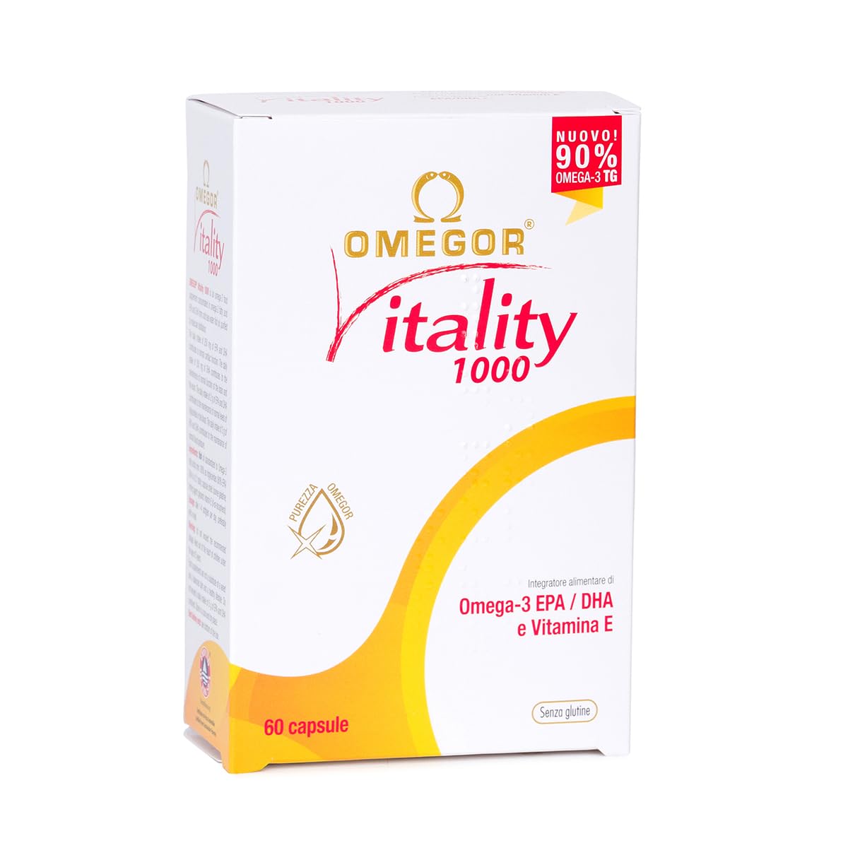 DescriptionProduct DescriptionOmegor Vitality is a supplement of omega-3 epa and dha and vitamin e. Like very few other products in the world, Omegor Vitality obtains on each batch the 5-star ifos (international fish oil standards), prestigious recognition that certifies on each batch marketed the concentration of active ingredients epa and dha, purity and freshness of omega-3 fish oil supplements. Ingredients Fish oil titrated to 90% in omega-3 in the form of triglycerides (EPA and DHA min. 80% in ratio 2:1); capsule in food gelatin; resistance agent: glycerol; vitamin E (d-?-tocopherol) Indications Take 1 or 3 capsules during main meals Safety warning Do not exceed the recommended daily dose. Keep out of reach of children under 3 years of age. Dietary supplements should not be understood as substitutes for a varied and balanced diet and a healthy lifestyle. Package contents 60 capsules in 4 blisters of 15 each.IngredientsFish oil titrated to 90% in omega-3 in the form of triglycerides (EPA and DHA min. 80% in a 2:1 ratio); edible gelatin capsule; resistance agent: glycerol; vitamin E (d-?-tocopherol)Safety WarningDo not exceed the recommended daily dose. Keep out of reach of children under 3 years old. Dietary supplements should not be understood as substitutes for a varied and balanced diet and a healthy lifestyle.
