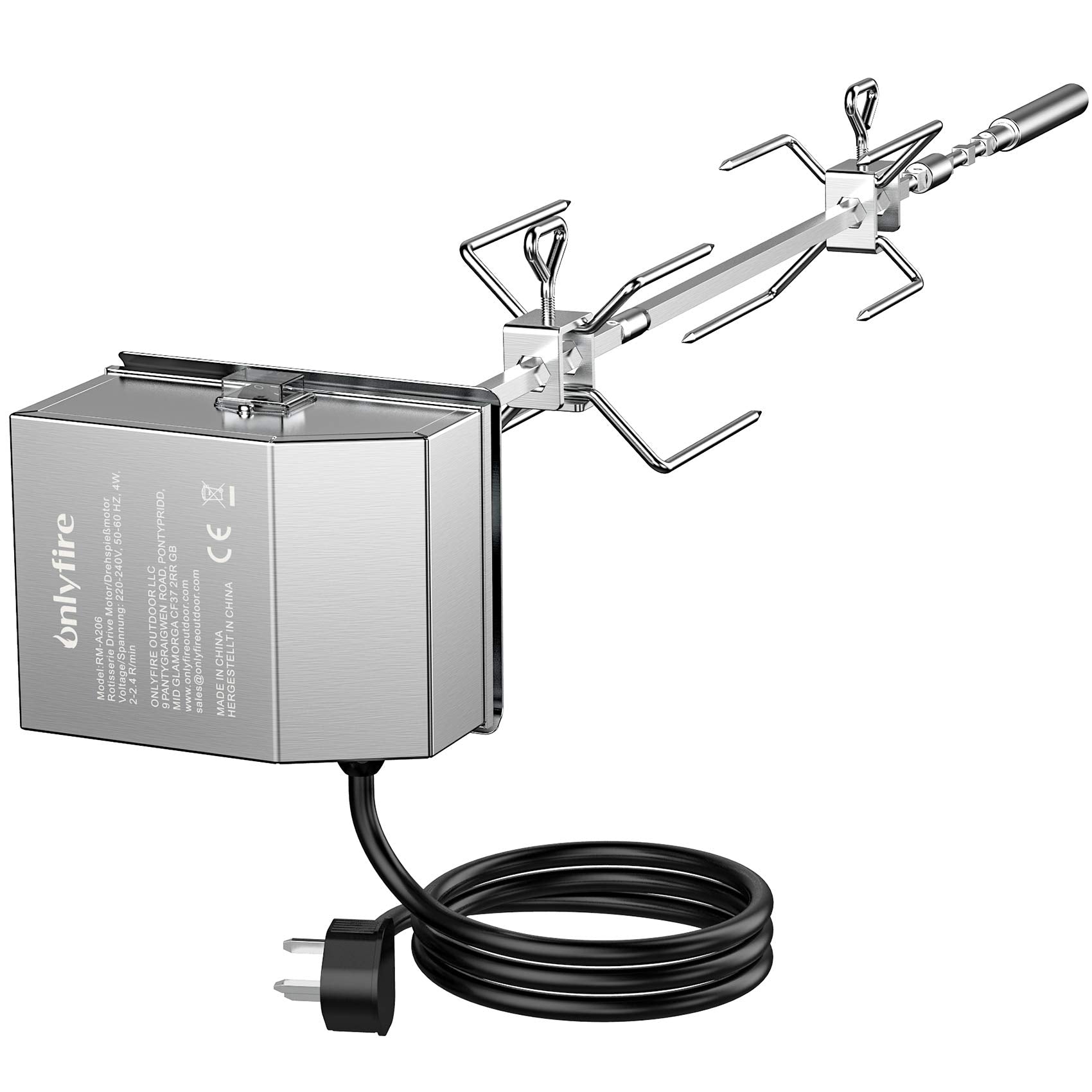 onlyfire BRK-6045 Stainless Steel Grill Rotisserie Kit 40LB UK motor fits for Weber Spirit 200/300-Serie & Spirit II 200/300-Serie Gasgrills
