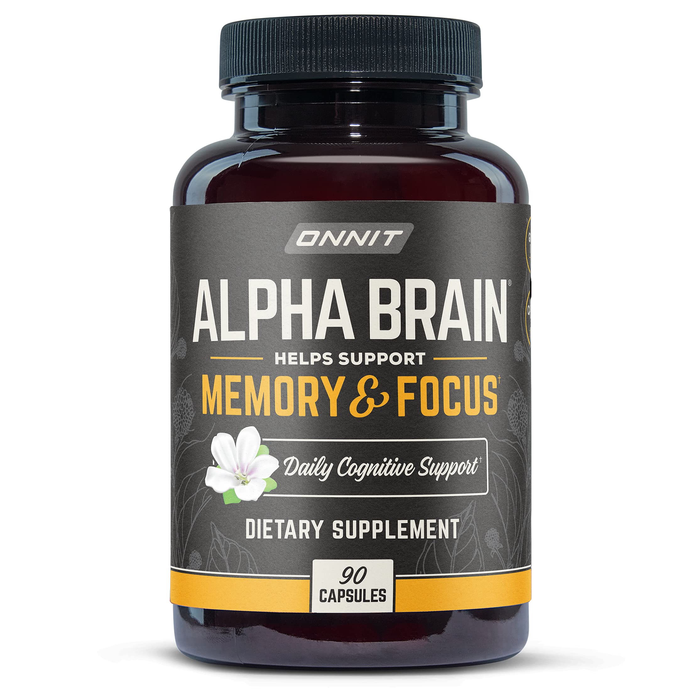 "Fight occasional brain fog and support focus with Alpha Brain from Onnit! These memory capsules for the brain are carefully formulated to help you get “in the flow,” so that you can always perform at your best level. Using nootropic ingredients, a dietary supplement that helps certain brain functions including memory, mental speed, and focus, Alpha Brain helps your brain produce more alpha waves to encourage creativity and productivity. With these memory vitamins for the brain for women and men, you can realize your potential! These vitamins for memory and brain focus are formulated with high-quality, earth-grown nutrients so you can focus on your career, academics, social life, or athletics with ease. They contain L-Theanine to promote attention, L-Tyrosine to help aid cognitive performance in stressful situations, Oat Straw Extract to promote cognitive function, Cat’s Claw Extract for cellular integrity, Phosphatidylserine to help maintain cellular function, and more! Our memory capsules for the brain can help you focus on complex tasks, react quicker, and think more clearly under stress. At Onnit, we measure time as moments that take you closer to who you want to become. We are on a mission to empower as many individuals as possible with a holistic philosophy regarding physical, mental, and spiritual well-being. The Alpha Brain booster supplement for focus, memory, clarity, and energy support is formulated without stimulants so you never have to worry about afternoon crashes. These brain capsules are caffeine-free, dairy-free, gluten-free, nut-free, and paleo and keto-friendly. With over 1 million bottles sold, Alpha Brain has been leading the nootropics space since 2011, so that you can realize your limitless potential! Product Details: Bottle of Alpha Brain - 90 Count"