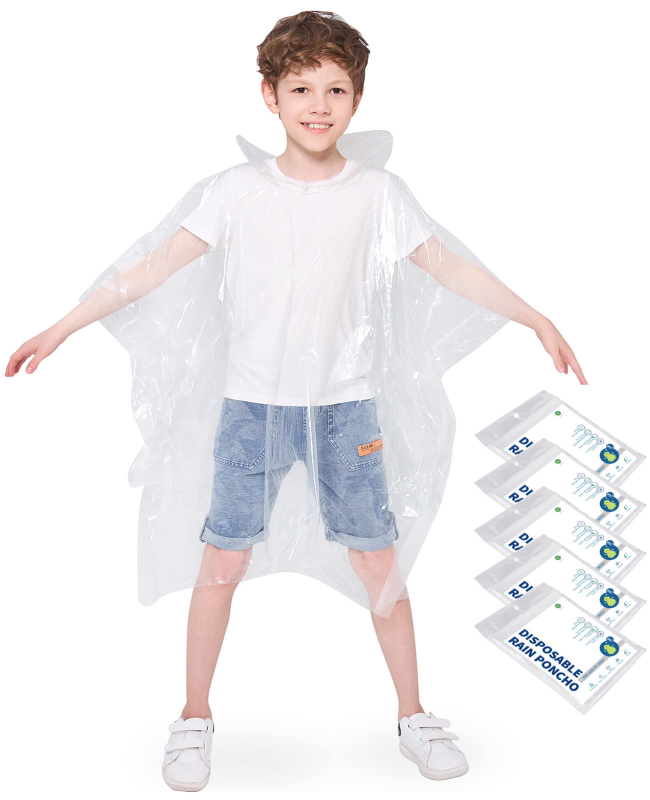 Opret 5 Pack Rain Ponchos for Kids, Disposable Rain Ponchos Emergency Waterproof Ponchos Durable Transparent Lightweight Raincoat with Hood for Boys and Girls