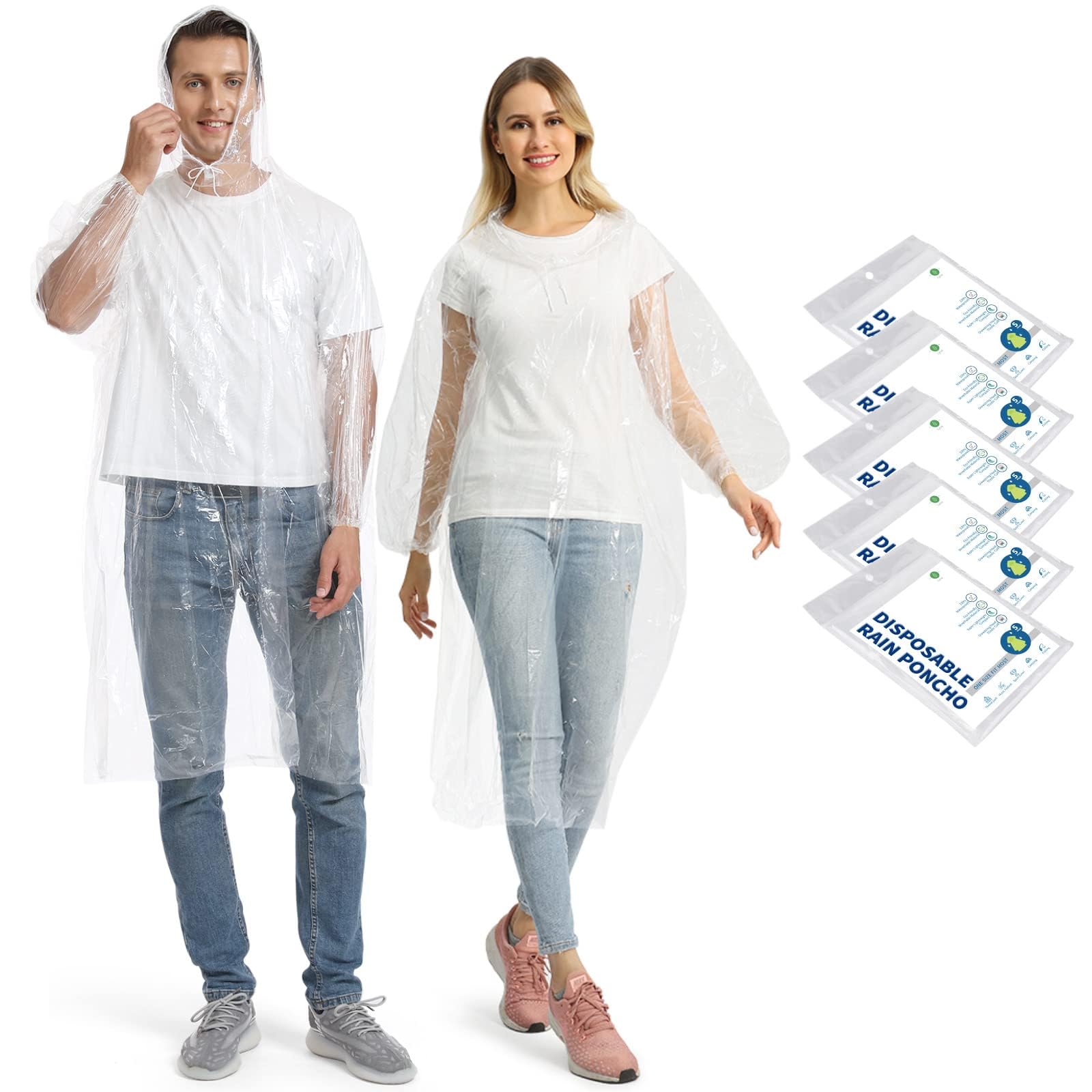 Opret Disposable Rain Ponchos 5 Pack, Emergency Raincoats Waterproof Ponchos Transparent Lightweight Rain Coats with Drawstring Hood and Elastic Cufffor Adults