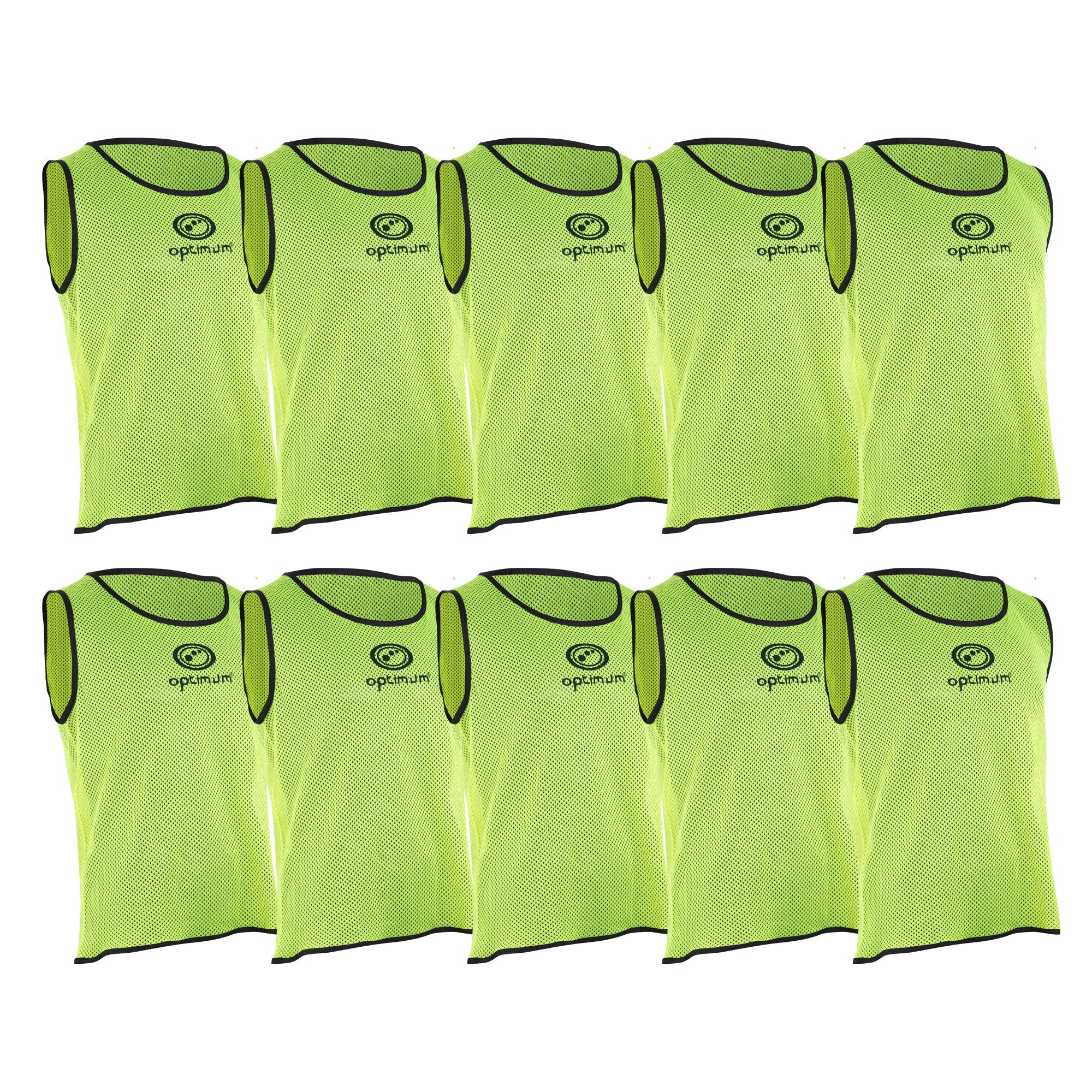 Product DescriptionThe Optimum bib is made from pro grade mesh polyester and is suitable for a whole range of sports. Made from 100% mesh polyester, the bib is lightweight and quick drying.Box Contains10 x Training Bib