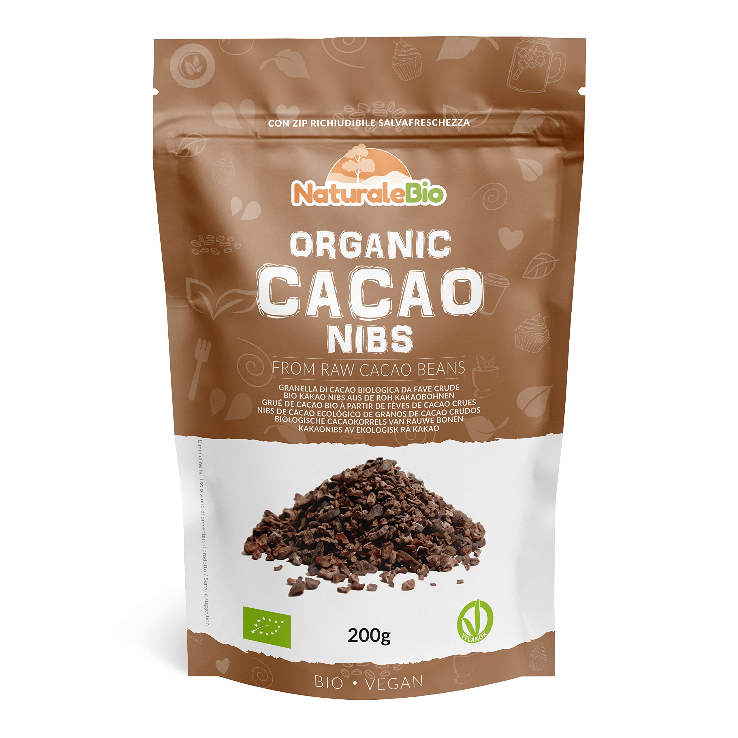 Organic Raw Cacao Nibs 200g. Peruvian, Natural and Pure. Made in Peru from the Theobroma Cacao Plant. Source of Magnesium, Potassium and Iron. NaturaleBio