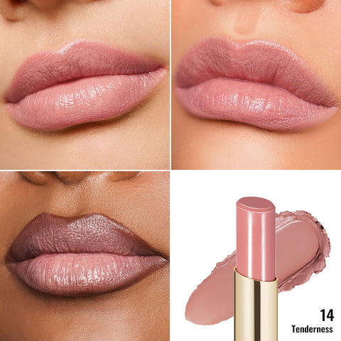 Oulac Nude Pink Lipstick - Moisture Shine Hydrating Lipstick & Tinted Lip Balm for Dry Lips, Medium Coverage Lip Colour | Juicy Look, Glossy Finish, Vegan, Cruelty-Free, Tenderness (14)