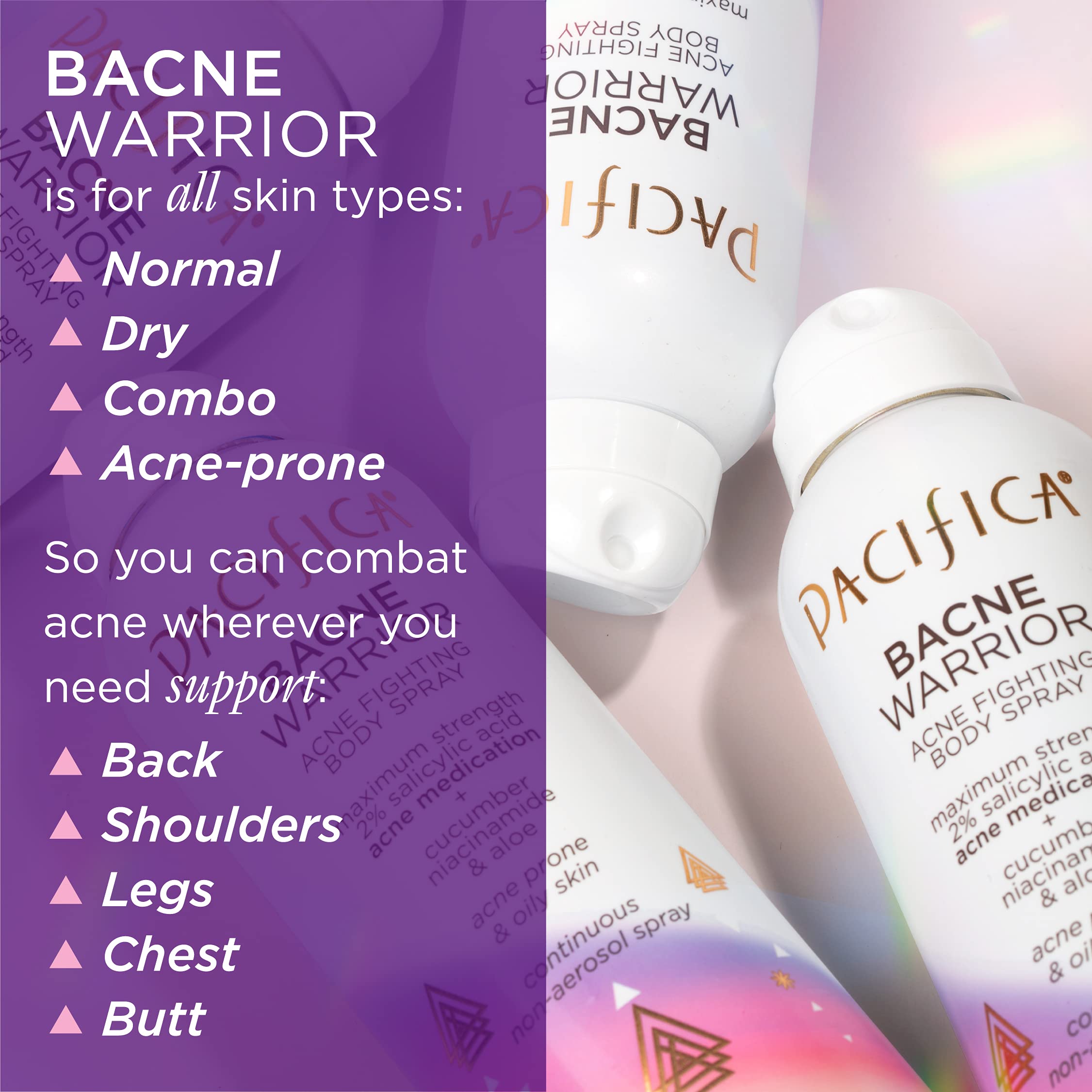 Dont let bacne keep you from showing your beautiful body Weve got your back From our fan favorite Acne Warrior line, we added this convenient continuous acne-fighting body spray to easily treat body acne.