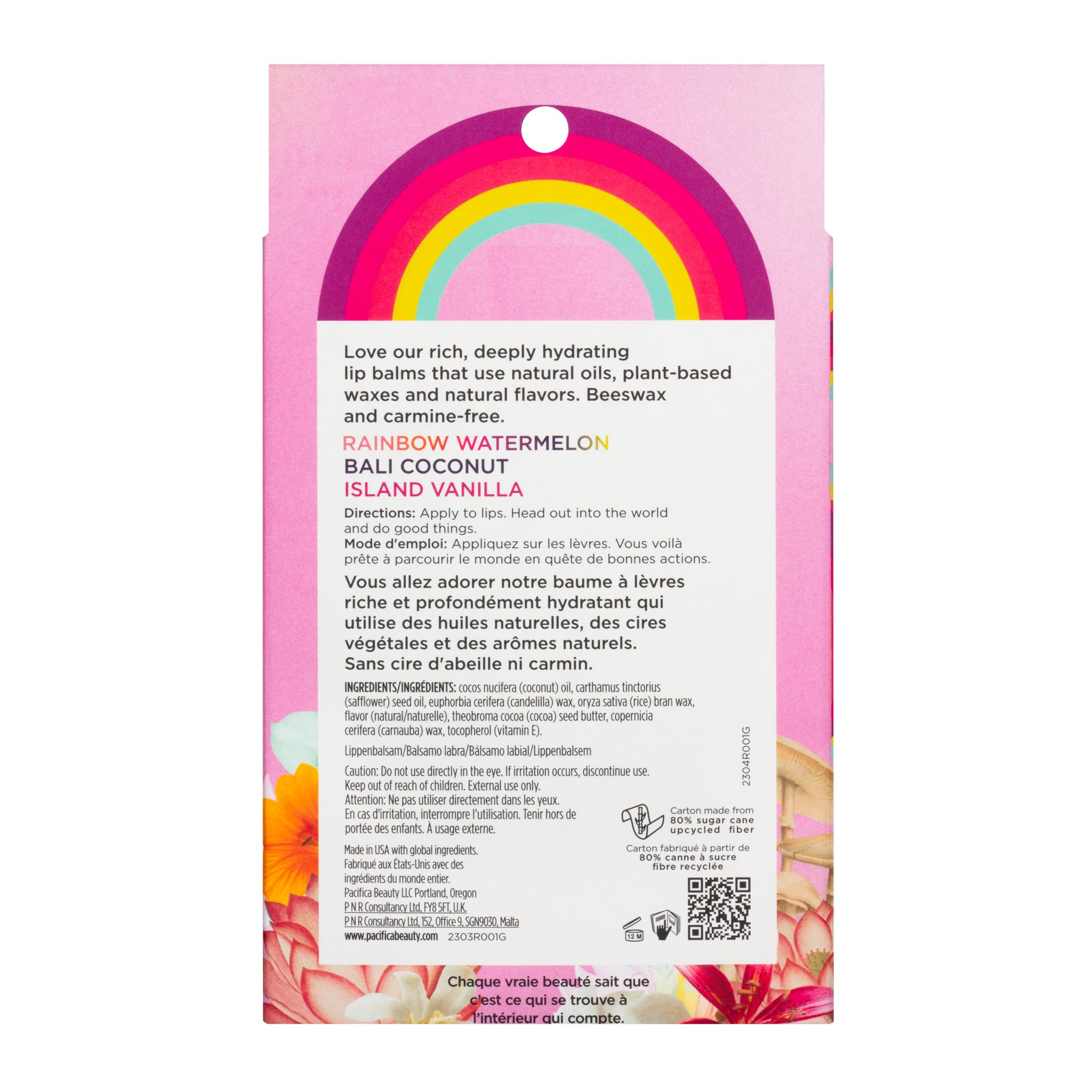 Summer is a feeling, and we want it to "stick" around all year! Escape to your happy place any time with our dreamy Vegan Lip Balm Set. The trio consists of our best-selling Rainbow Watermelon and Bali Coconut lip balms, and our brand new Island Vanilla. These multi-magic sticks are packed with hydrating oils and plant-based waxes, to give your lips the luxe treatment they'll love, without any animal or insect ingredients like lanolin, beeswax or carmine.