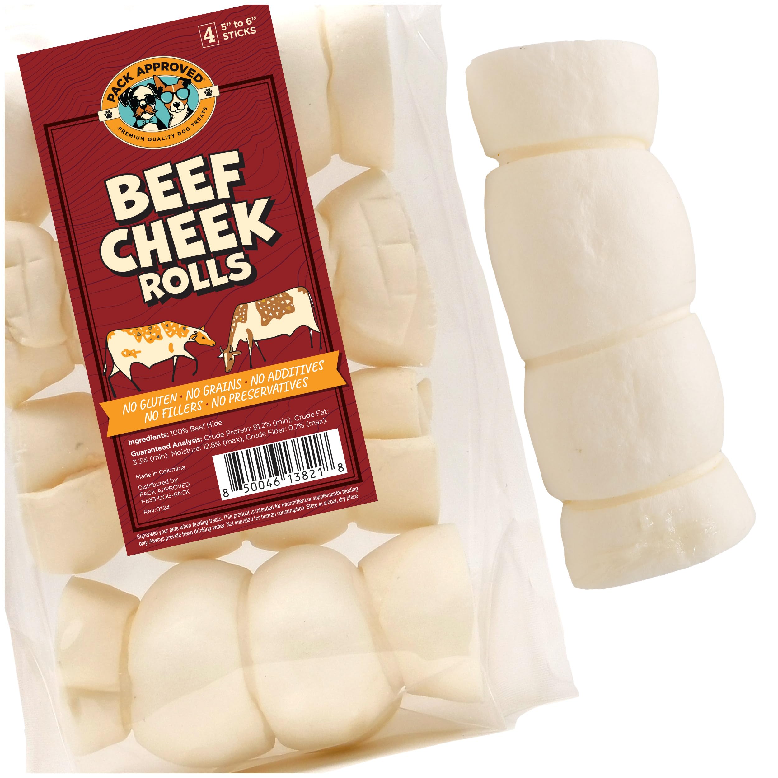 Reward your canine companion with the best, Pack Approved Beef Cheek Rolls for dogs! These all-natural treats are specially designed for medium-sized breeds, offering a delicious and healthy way to satisfy their innate chewing instincts. Each roll is packed with natural collagen, essential for maintaining joint health and overall well-being. Say goodbye to the odor and mess of traditional raw hides with our medium dog rolls. They're the perfect beef cheek roll, keeping your pup engaged and reducing boredom without any stains or smells. Plus, our beef cheeks for dogs are free from artificial flavors, colors, and preservatives, making them a treat you can trust. Not only are these cheek rolls for dogs a tasty treat, but they also double as a dental health tool. As your dog gnaws on these rolls, they help to scrape away plaque and tartar, promoting a clean and healthy mouth. Give your four-legged friend the gift of a happy, healthy chew time with our Beef Cheek Rolls - the treat that's as nutritious as it is delicious.