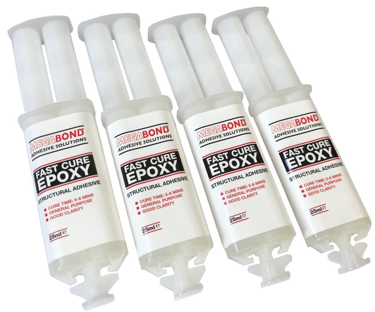 A fantastic industrial structural adhesive ideal for general repairs. This is a high quality premium product. Rapid cure time 5-6 mins. Very good clarity. Please see picture above of when the adhesive is mixed and the level of clarity it gives. Clear is written on the plastic and the epoxy is mixed over the top. Suitable for bonding aluminium, steel, galvanised iron, plastic ceramic, glass and many more. min/max temperature: -40°c - +121°c. Shear strength (steel): 3.8N/mm². 25ml syringe. Made in the UK.