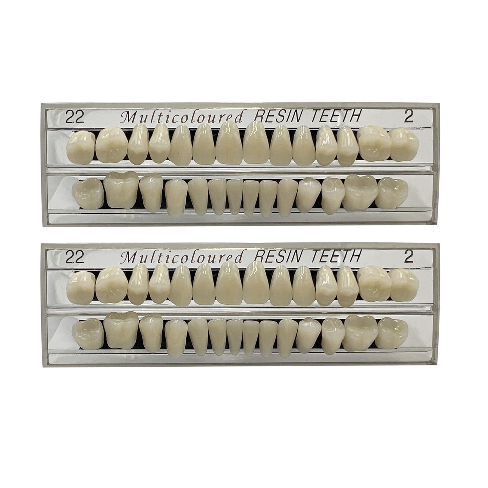 Pack of 56 False Teeth 2 Sets Synthetic Resin Tooth, Upper and Lower Denture Tooth, Party Horror Prop Makeup DIY Replacement, 22 A2
