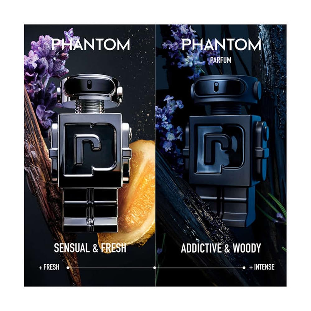 Capturing the thrill of sultry masculinity Phantom Parfum by Rabanne fuels his passions and reveals his seductive aura. Inspired by the complex facets of the man, this intense blend combines electrifying lavender with addictive vanilla and enticing vetiver. Experience the allure of Phantom Parfum.