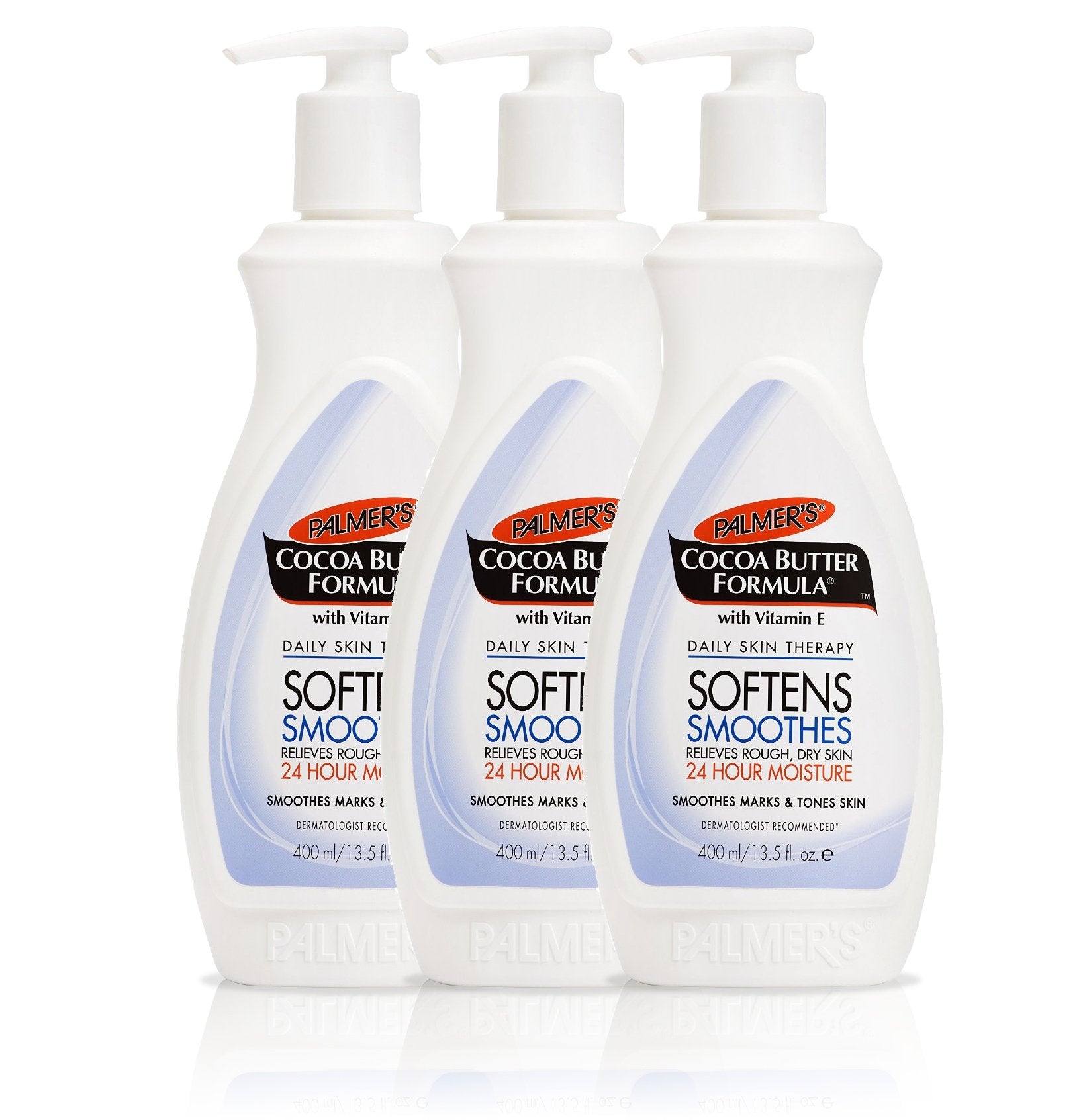 DescriptionProduct DescriptionAn everyday essential for sensitive skin, Palmer's Cocoa Butter Formula Lotion bathes your skin in moisture. Pure Cocoa Butter is a rich emollient moisturiser which leaves skin soft and silky smooth transforming even the roughest, driest areas into buttery soft skin.IndicationsRich, luxurious Palmer's Cocoa Butter Formula daily body lotion provides deep hydration all over. This velvety soft formula absorbs quickly, creating a protective barrier that locks in moisture. From normal to dry to eczema prone skin, this emollient rich lotion effectively softens and relieves, leaving skin smooth, supple and beautiful.IngredientsWater (Aqua), Theobroma Cacao (Cocoa) Extract, Glyceryl Stearate, Petrolatum, Propylene Glycol, Glycerin, Cocos Nucifera (Coconut) Oil, Mineral Oil (Paraffinum Liquidum), Theobroma Cacao (Cocoa) Seed Butter, Elaeis Guineensis Oil, Cetyl Alcohol, Dimethicone, Tocopheryl Acetate, Hydroxyethylcellulose, PEG-8 Stearate, Behentrimonium, Methosulfate, Butylene Glycol, Stearalkonium Chloride, Cellulose, Sodium Acetate, Fragrance (Parfum), Phenoxyethanol, Sorbic Acid, Benzoic Acid, Stearyl Alcohol, Myristyl Alcohol, Yellow 5 (CI 19140), Orange 4 (CI 15510), Benzyl Alcohol.Safety WarningFOR EXTERNAL USE ONLY