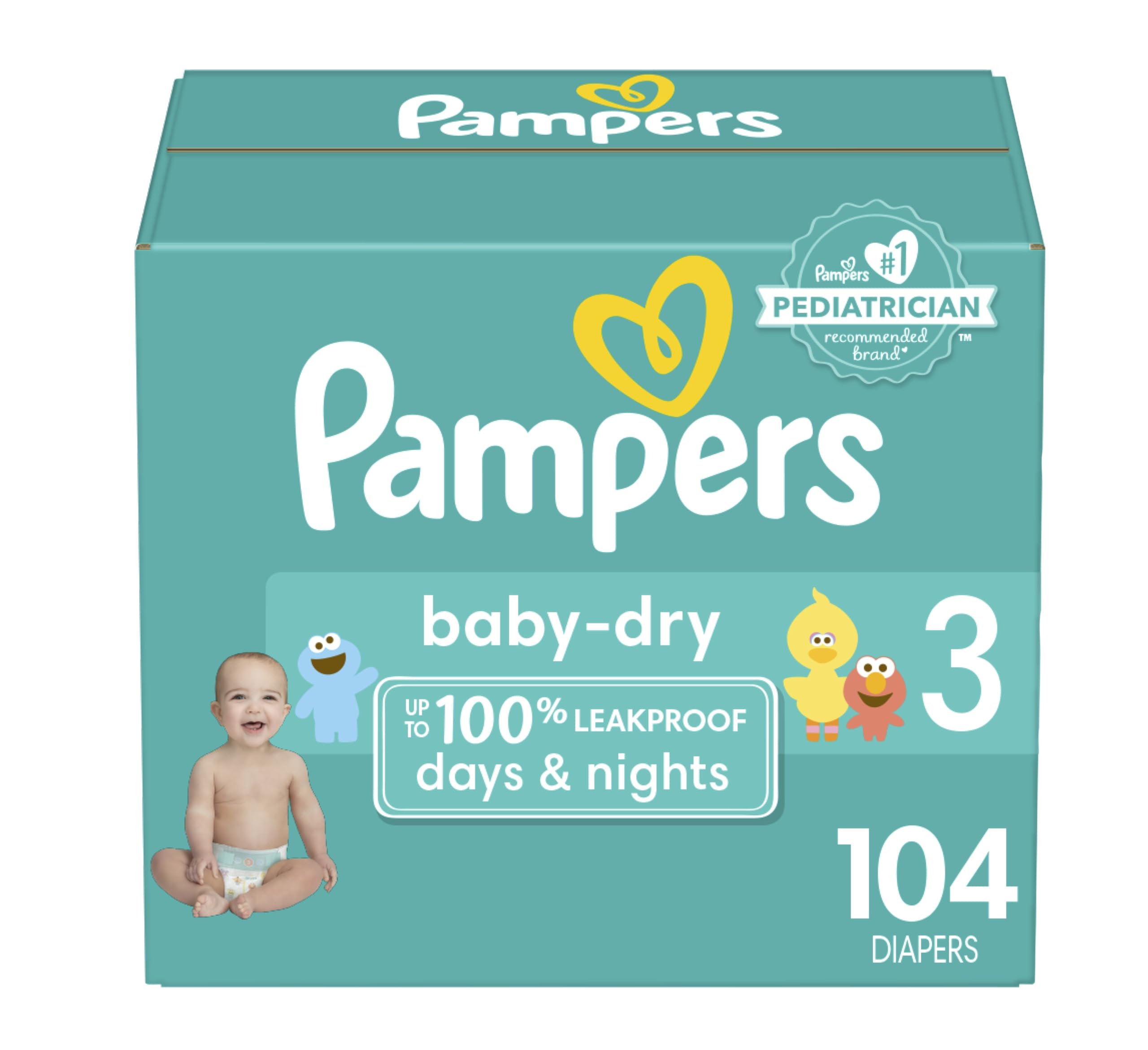 Pampers Baby Dry Diapers - Size 3, 104 Count, Absorbent Disposable Diapers