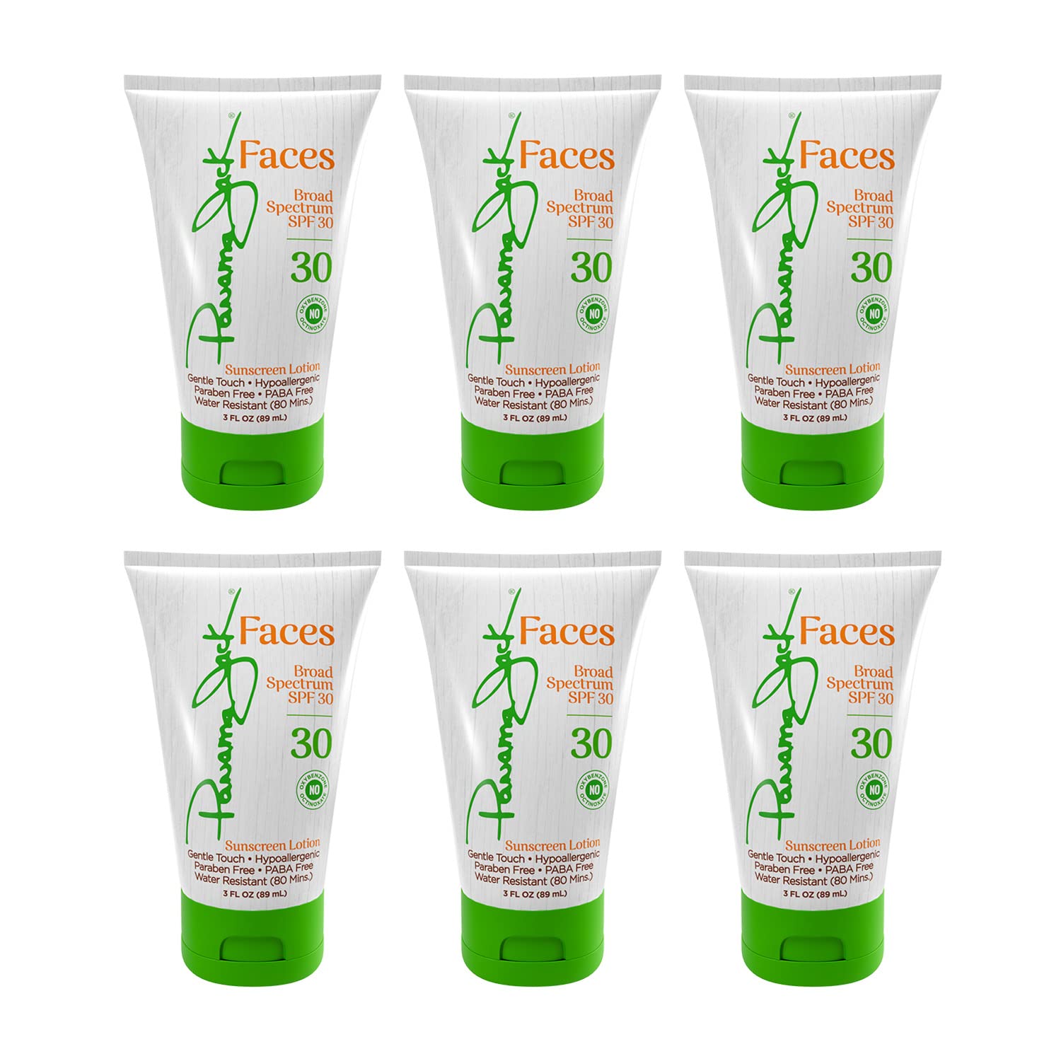 Panama Jack Faces Sunscreen Lotion - SPF 30, Broad Spectrum UVA/UVB Protection, Hypoallergenic, PABA, Paraben, & Gluten Free, 3 FL OZ (Pack of 6)