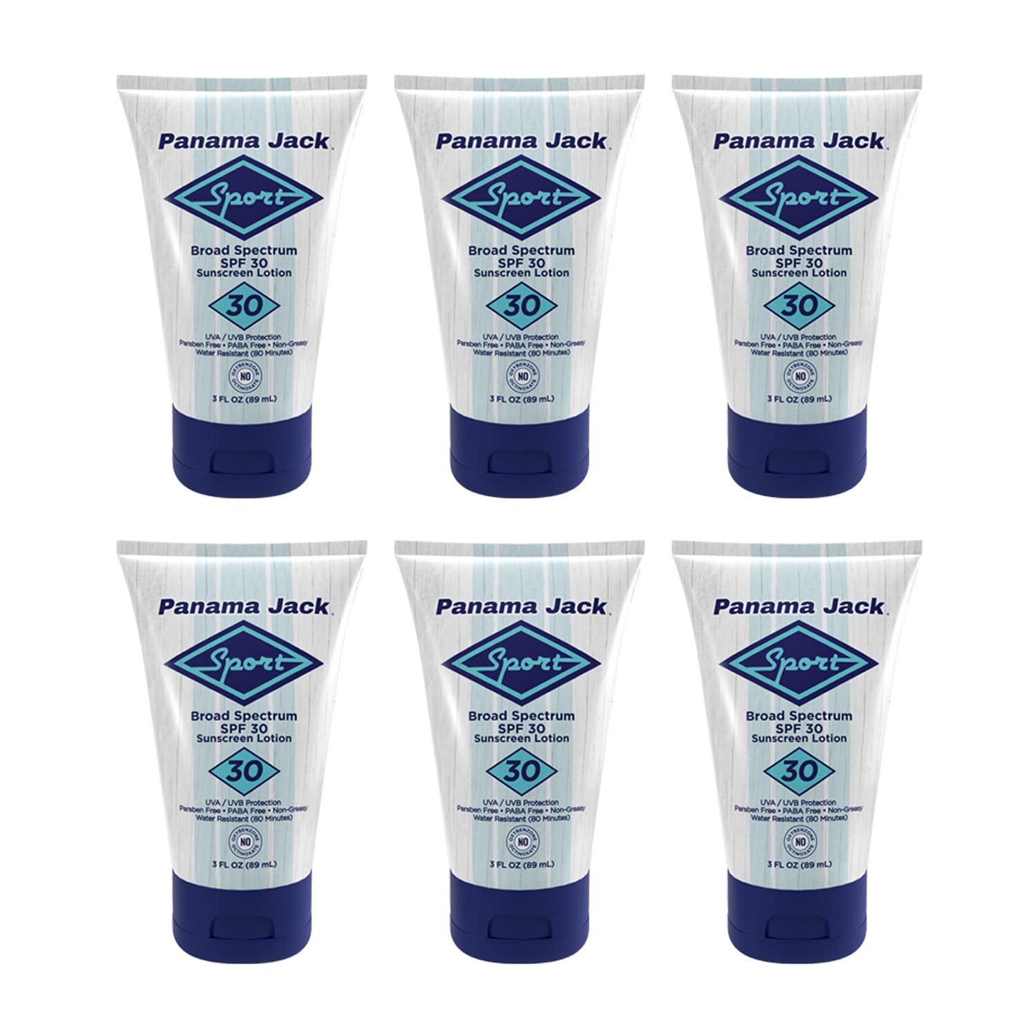 Panama Jack Sport Sunscreen Lotion - SPF 30, Broad Spectrum UVA/UVB Protection, Non-Greasy, PABA, Paraben, Gluten & Cruelty Free, 3 FL OZ (Pack of 6)