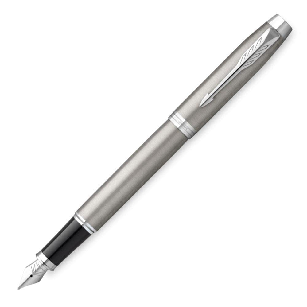 Parker IM Fountain Pen | Stainless Steel with Chrome Trim | Medium Point with Blue Ink Cartridge | Gift Box