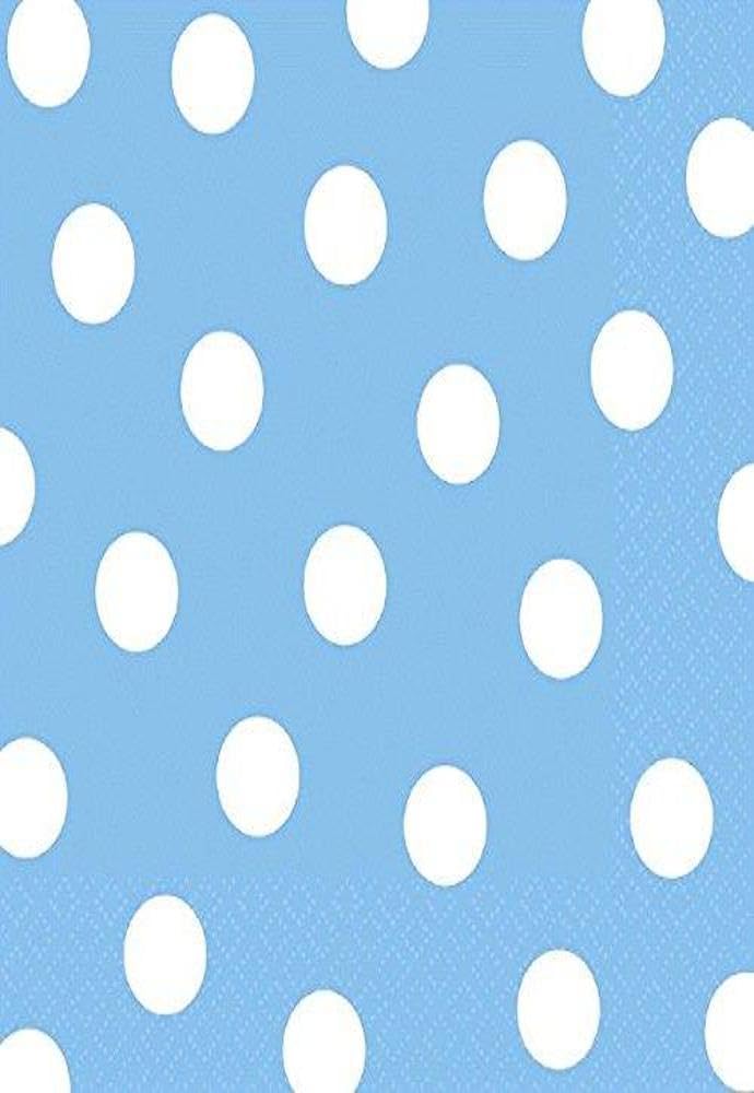 Add some design to the table with these Festive Pastel Blue Dots Luncheon Napkins! Our paper beverage napkins feature a blue and white polka dot pattern. Each measures 6.5" x 6.5". Includes 16 per package.