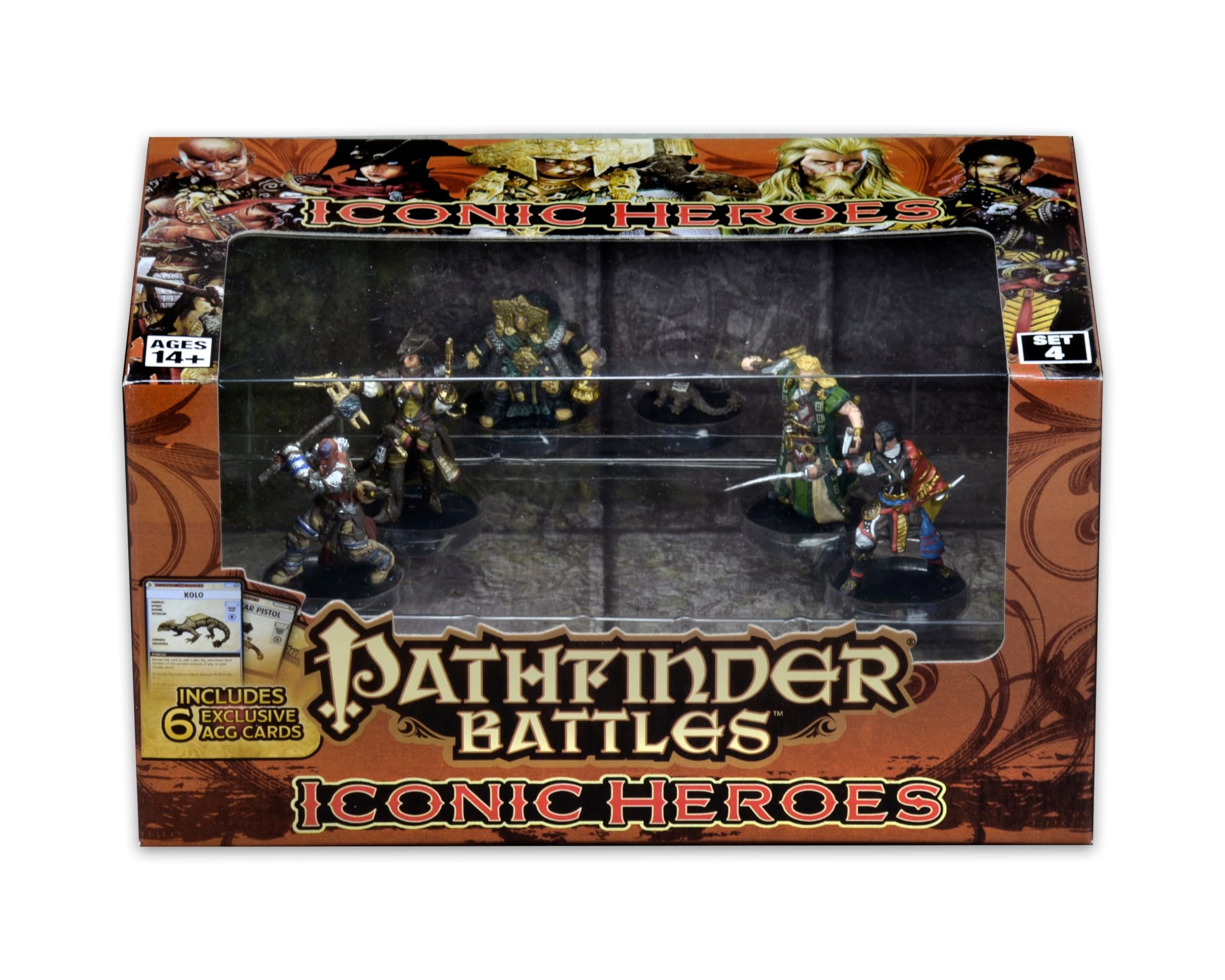 Iconic Heroes Set 4 includes six all-new miniatures featuring famous personalities from the Pathfinder roleplaying universe: Crowe, Lirianne, Hakon, Jirelle, Shardra and the Spirit Animal, Kolo! Each of these miniatures is an ALL-NEW sculpt and will feature a dynamic pose, incredible detail and a premium paint job.