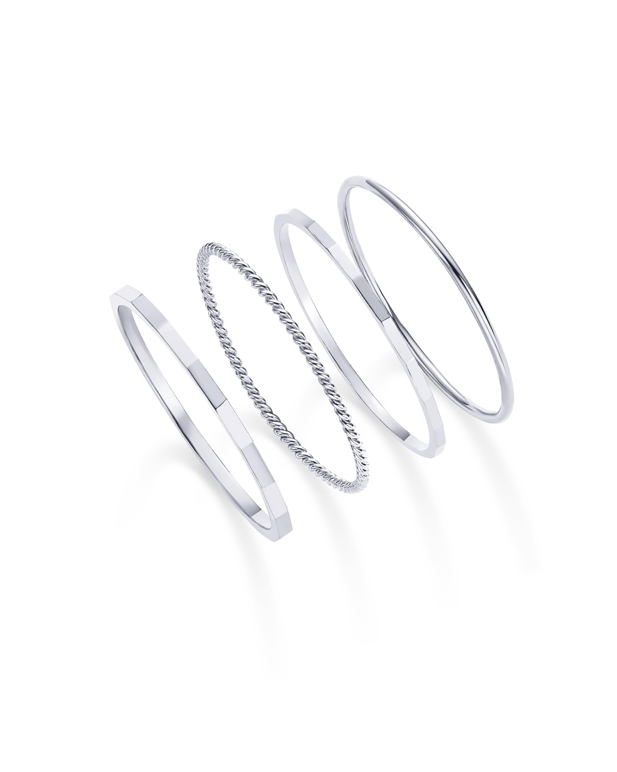 PAVOI 14K Gold Plated Four Pieces Thin Rings Set for Women | 4 Dainty Stacking Rings Pack | Minimalist Stackable Bands (White Gold, 9)