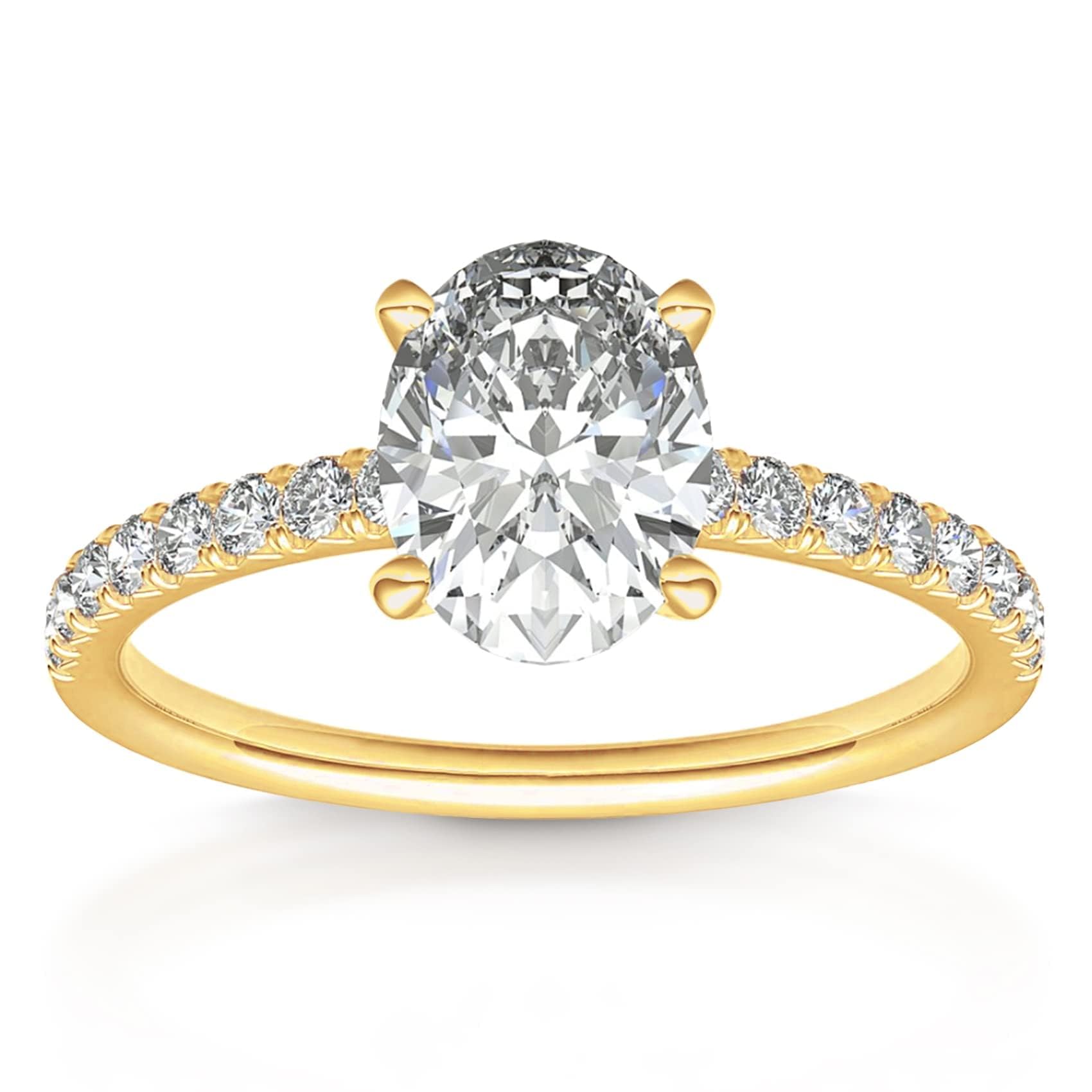 PAVOI 14K Yellow Gold Plated Engagement Ring For Women | Wedding Ring For Women | Oval Womens Fake Engagement Ring | Size 5.5