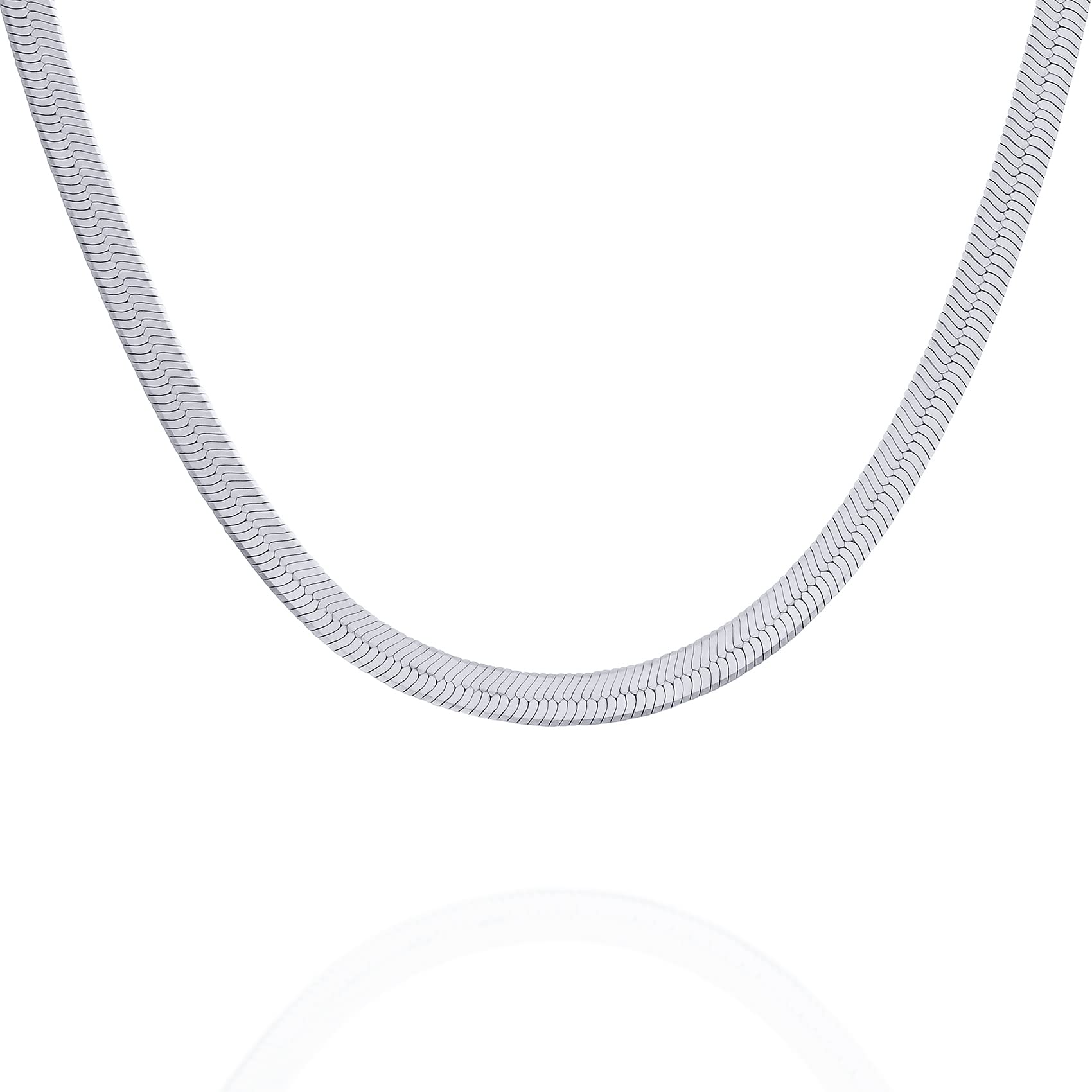 PAVOI Italian Solid 925 Sterling Silver, 22K Gold Plated Snake Chain Necklace, 3mm Italian Diamond-Cut Herringbone Necklace for Women and Men, MADE IN ITALY (16, White Gold)