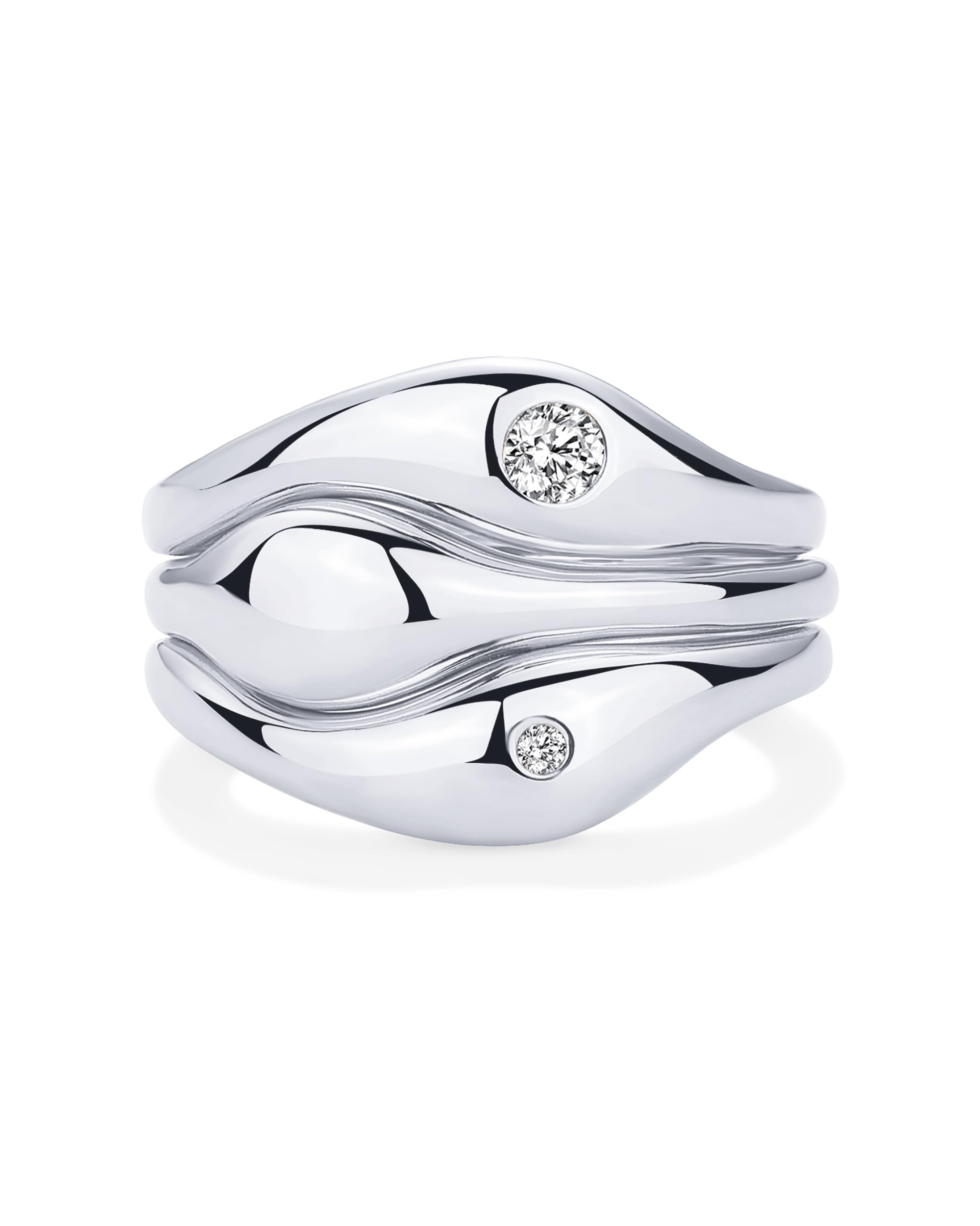 PAVOI Rhodium Plated Chunky Stackable Rings Set for Women | Wavy Triple Ring Stack | Cubic Zirconia Bands Pack | Size 5