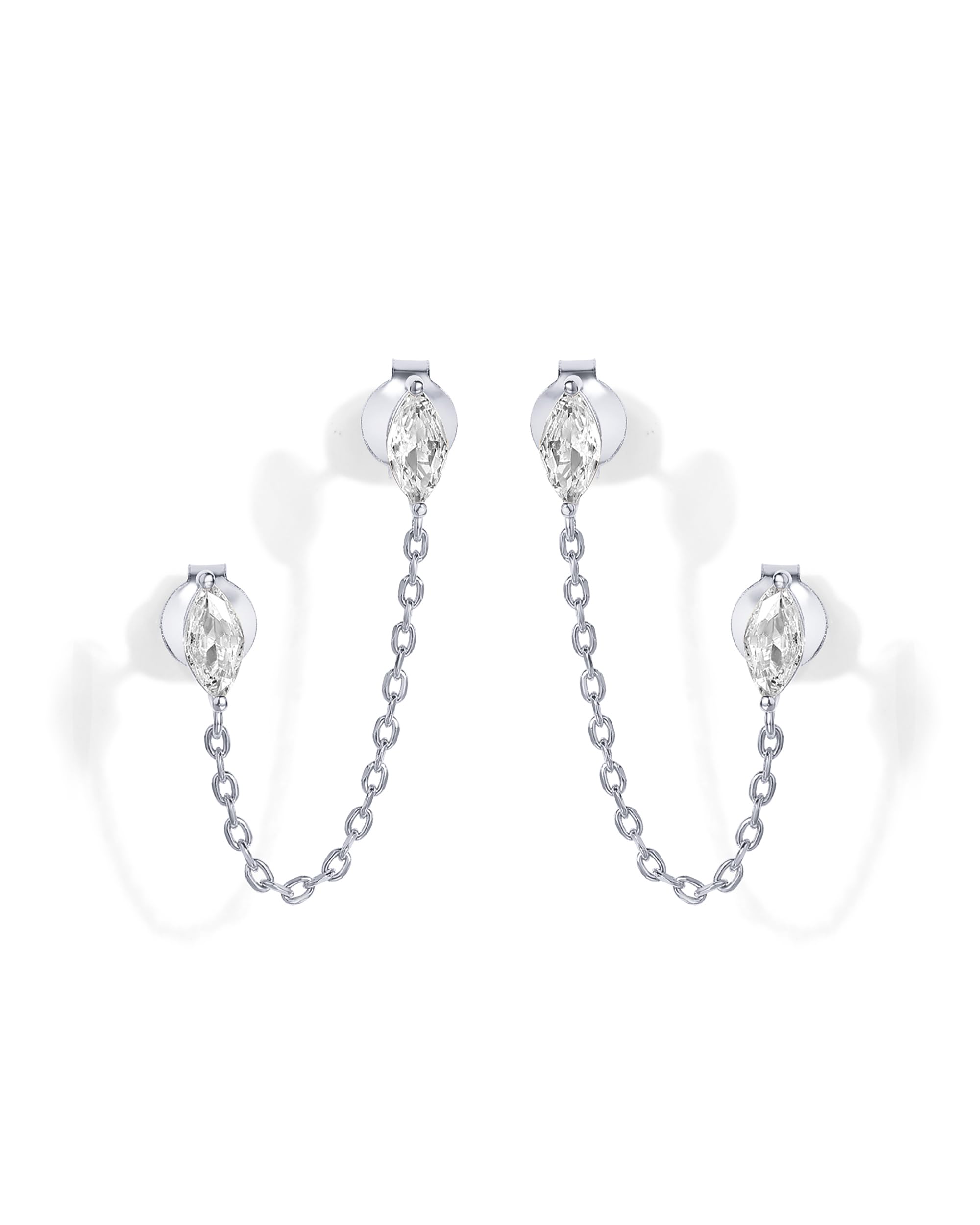 PAVOI Rhodium Plated Delicate Navette CZ Chain Earrings for Women | Double Piercing Dangle Chain Studs Earrings | Cubic Zirconia Earscapes Earrings