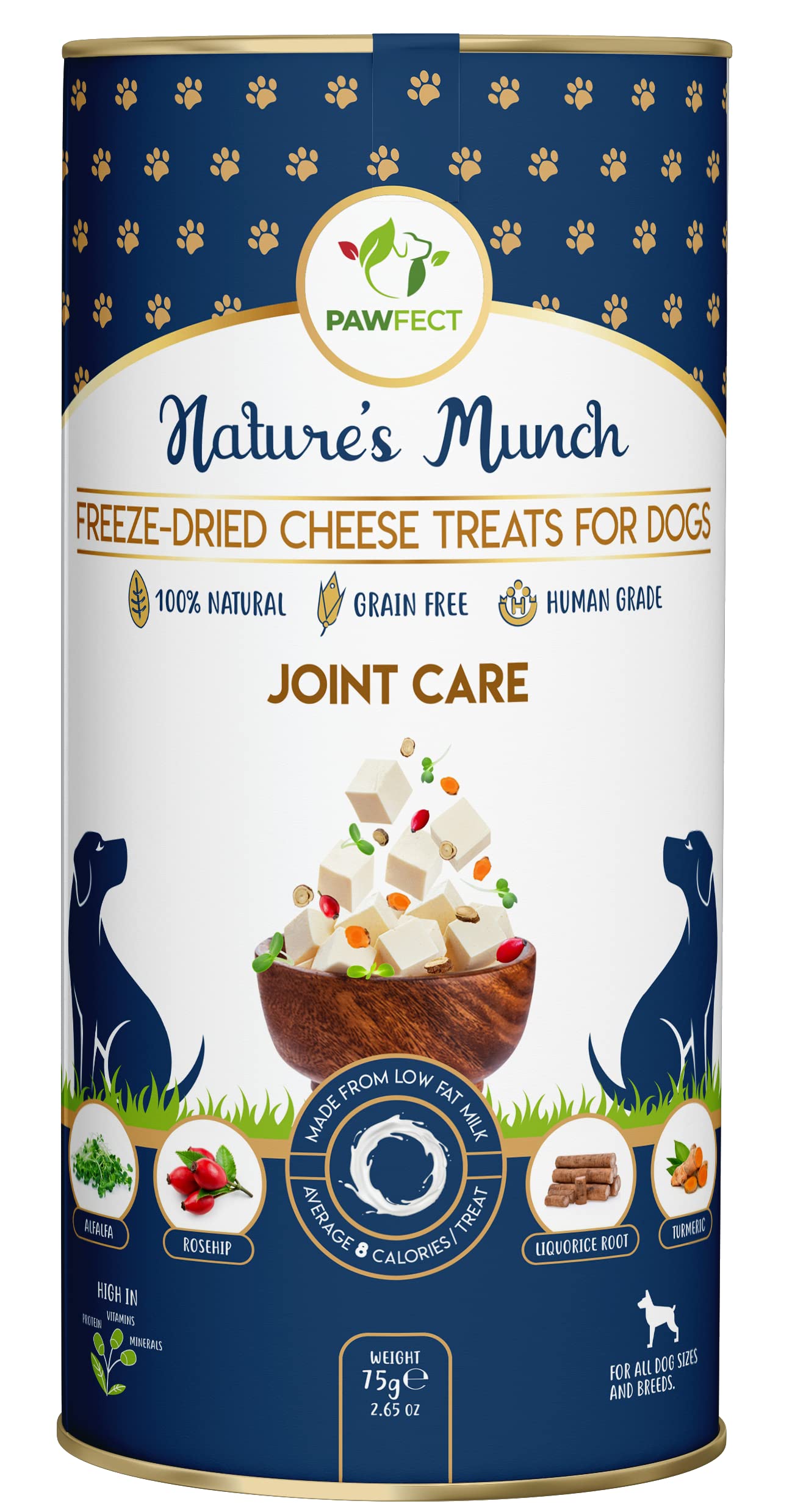 "Nutritiously delicious treats made with cottage cheese and gently blended with alfa alfa, liquorice root, rosehip and turmeric. This recipe has been specifically formulated for any dog with mobility issues or those that are highly active. These treats are Freeze-Dried to lock in the natural goodness of the carefully selected ingredients meaning these crunchies are highly recommended for joint health. "